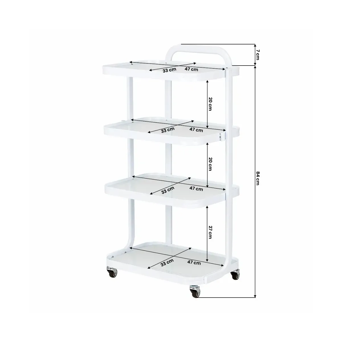 Struttura robusta: La struttura del carrello è realizzata in metallo verniciato di bianco, garantendo resistenza e durata nel tempo.