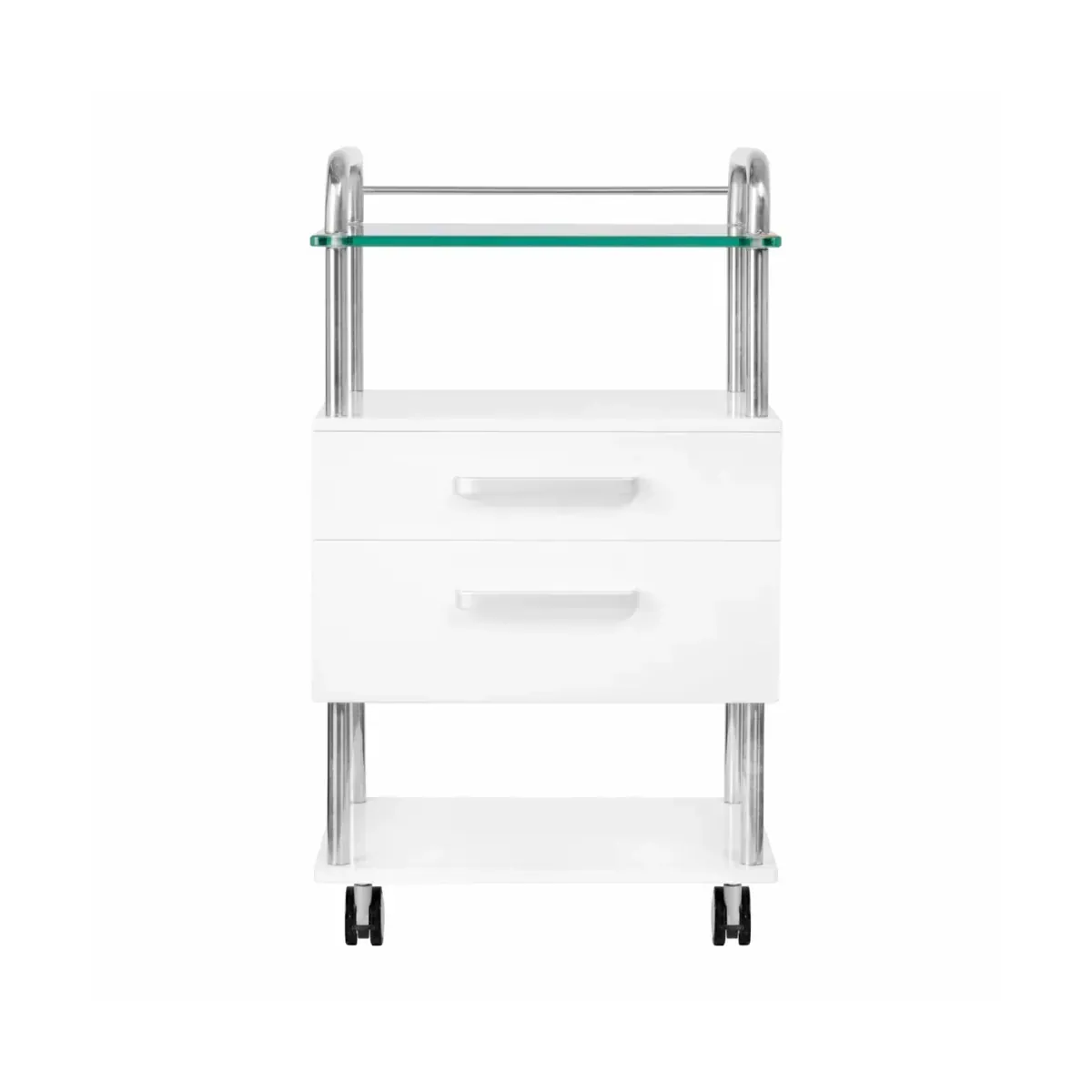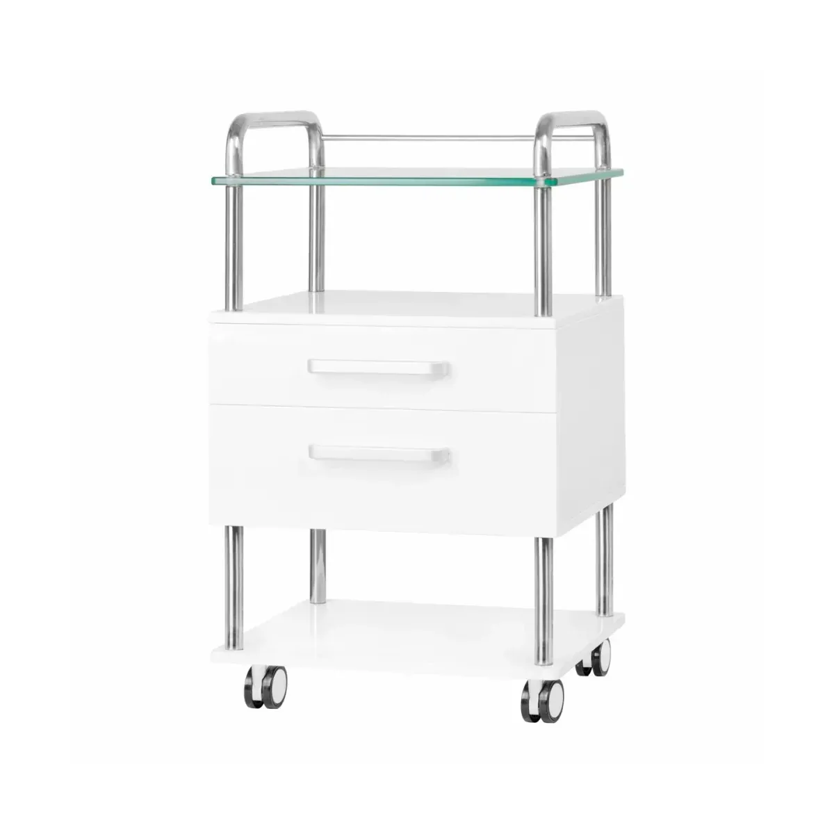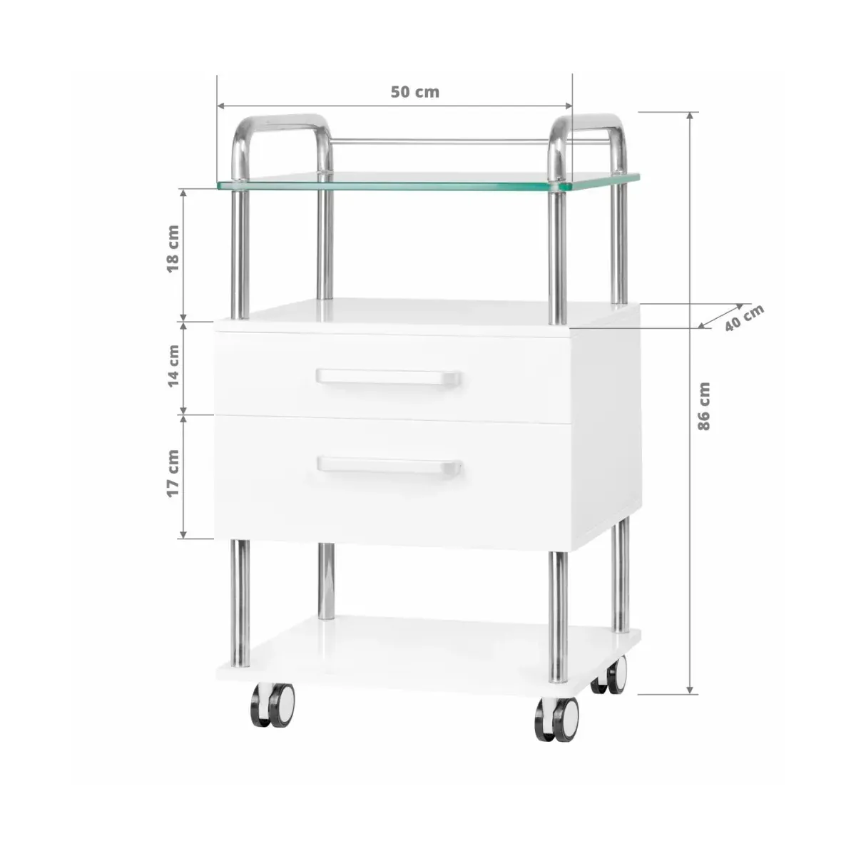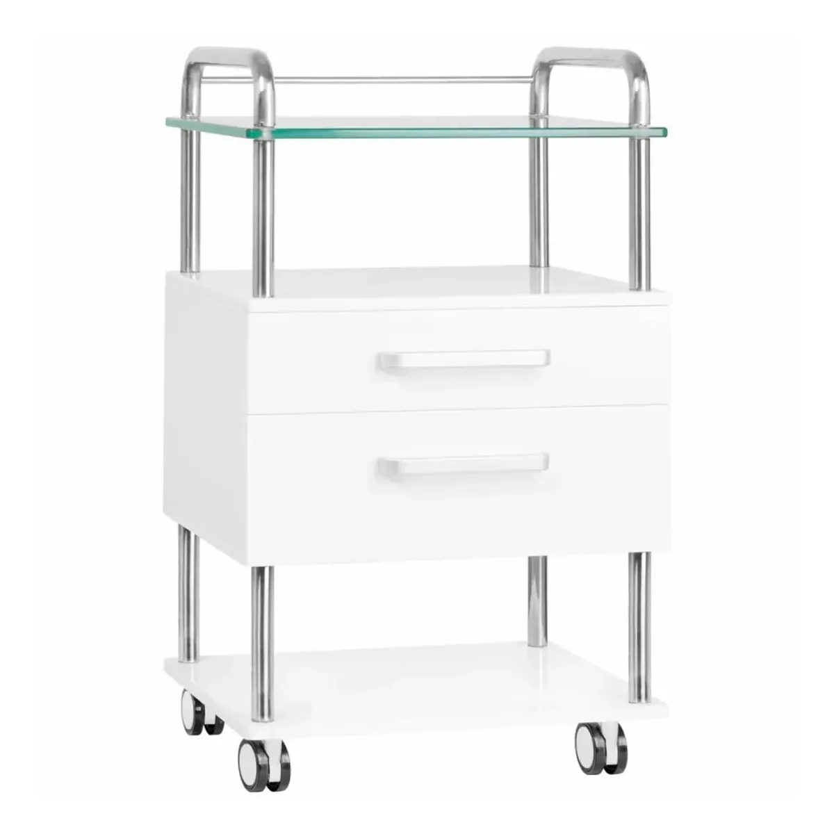 Il nostro carrello estetica professionale è la soluzione ideale per organizzare strumenti e prodotti di lavoro con stile e praticità. Dotato di 2 cassetti spaziosi e una mensola in vetro resistente, offre ampio spazio per tutto ciò di cui hai bisogno durante i trattamenti.