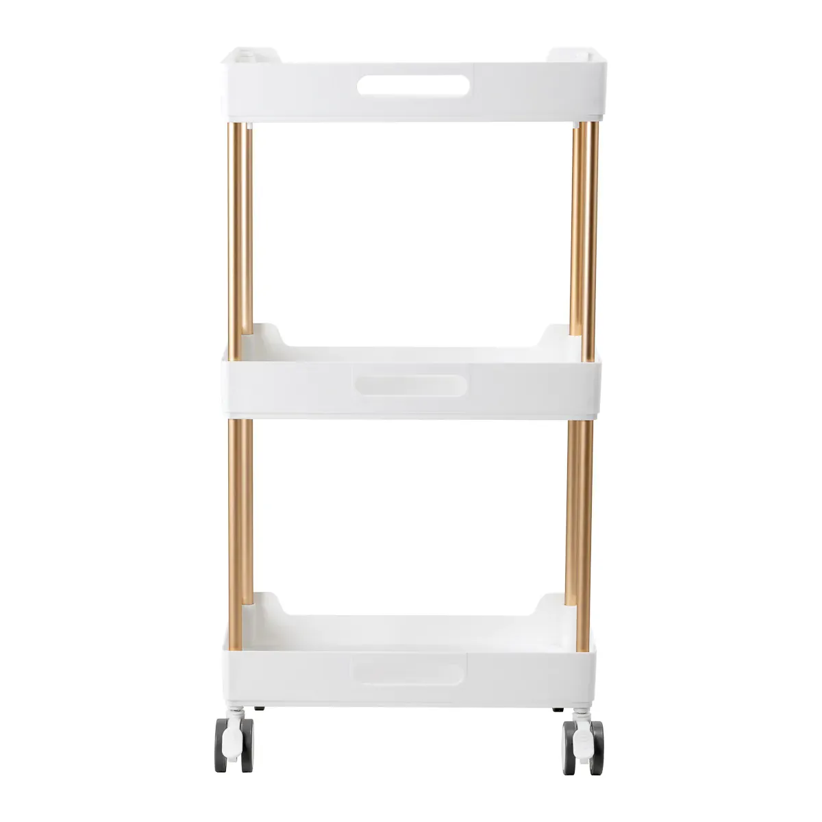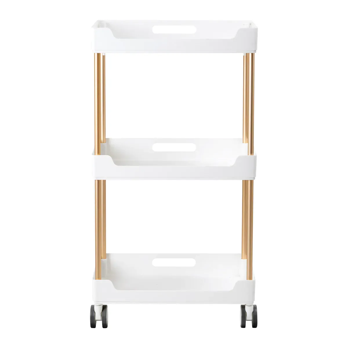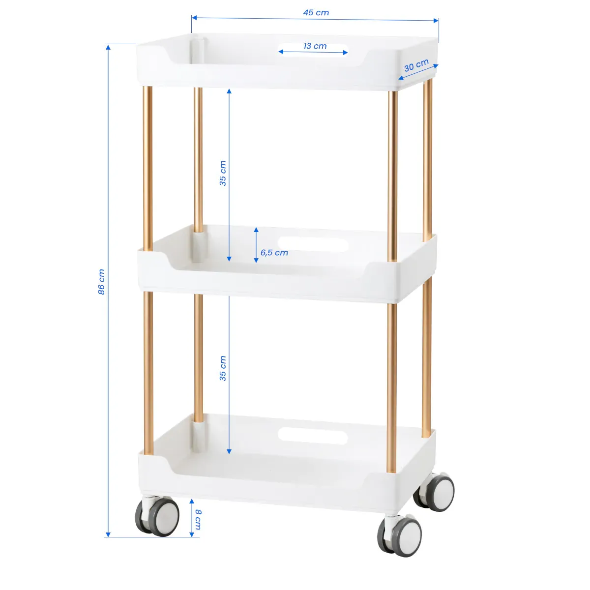 Carrello Estetista Professionale con 3 Mensole Bianco e Oro New