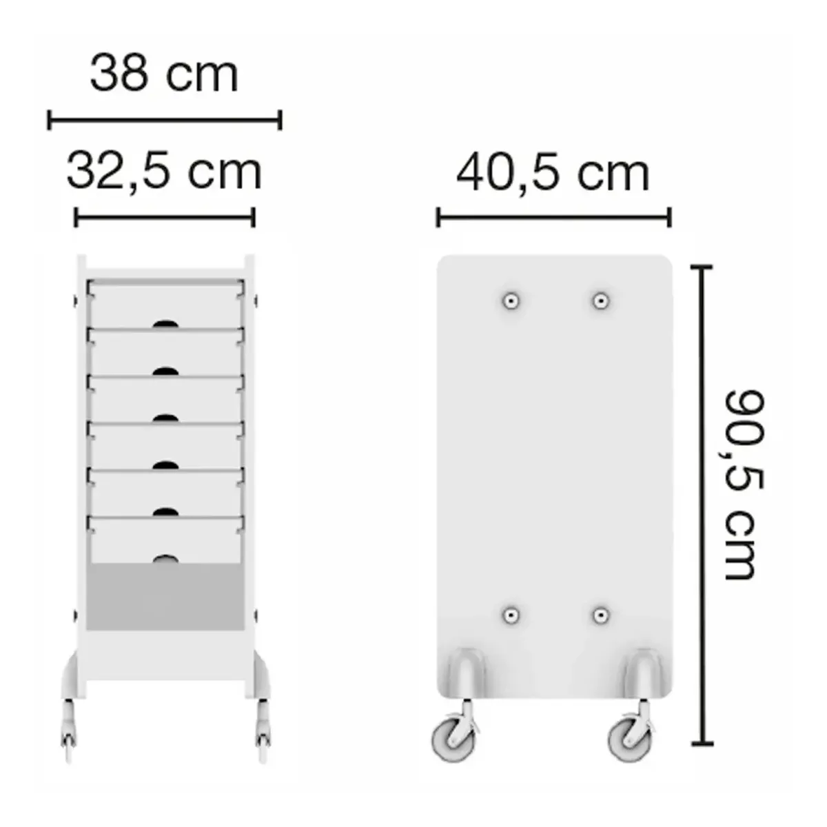 Carrello parrucchiere ed estetisti in legno con cassetti in materiale resistente alle tinte, con sei cassetti scorrevoli ed estraibili, vano porta oggetti. Completo di supporti laterali removibili per alloggiare attrezzi, flaconi, phon e piastre. Questo carrello per parrucchiere, disponibile in varie colorazioni, è dotato di esclusive ruote alte NO-HAIR di Ceriotti che essendo più sottili delle ruote standard e riducendo il contatto con il pavimento, raccolgono meno capelli, rimanendo sempre pulite ed efficienti.