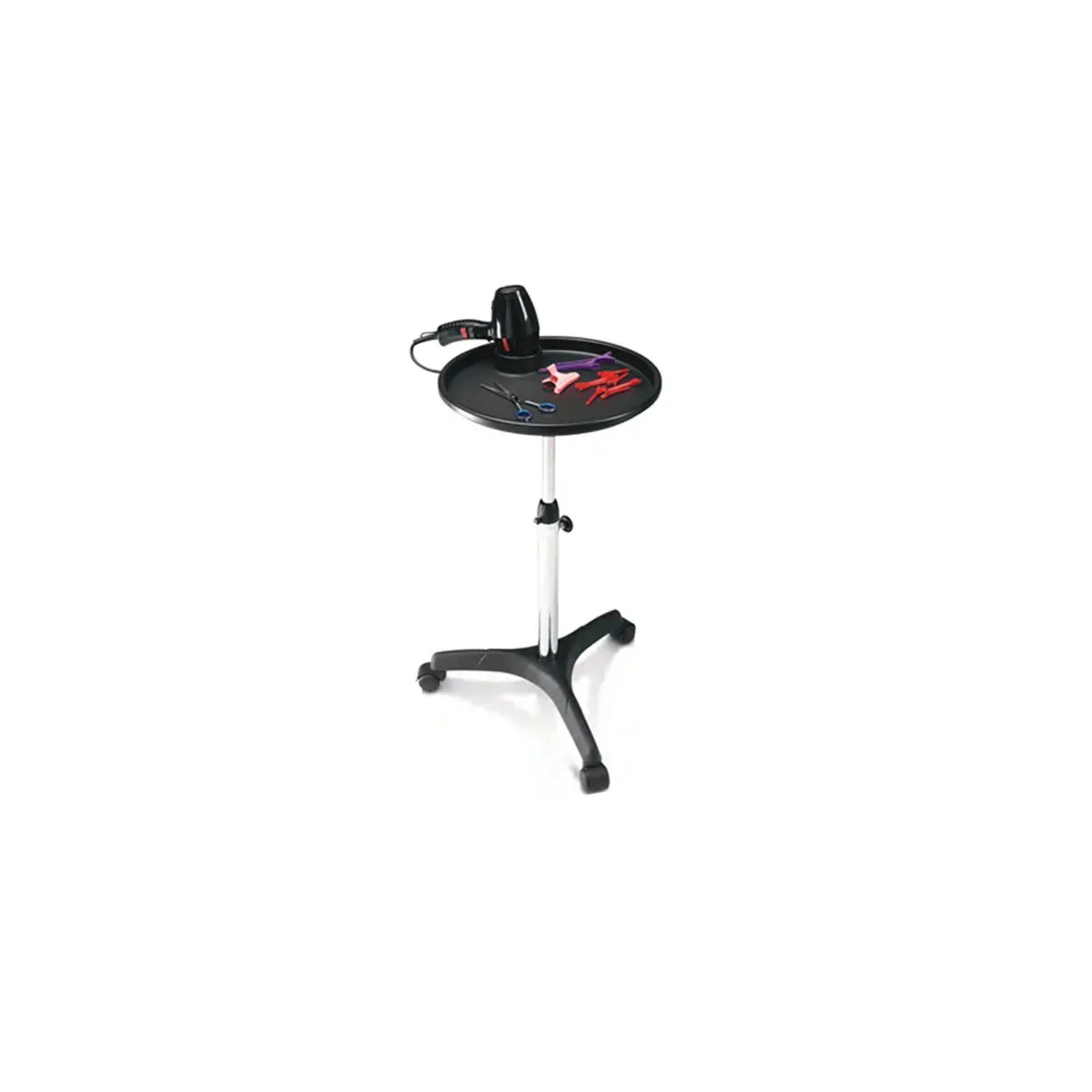 Lo stativo regolabile con base a 3 razze e piano tondo porta phon è uno strumento indispensabile per ogni salone di bellezza, centro estetico o parrucchiere professionale che desideri ottimizzare l'organizzazione e la funzionalità del proprio spazio di lavoro.