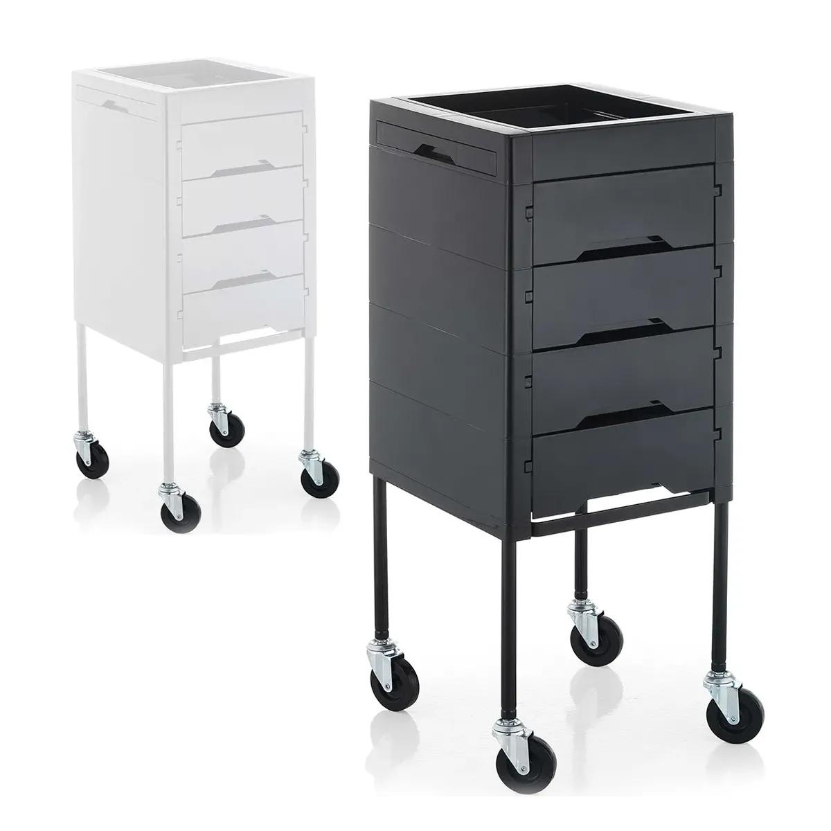 Carrelli per Parrucchieri Bianco o Nero con 4 Cassetti e 2 Mensole Estraibili