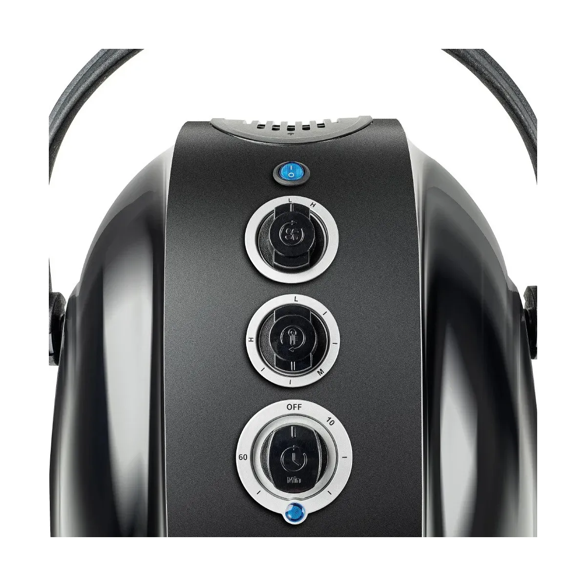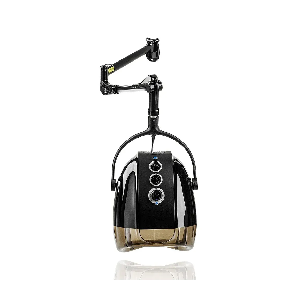 Dotato di tre comode manopole di controllo, consente la regolazione della velocità, della temperatura e del timer (fino a 60 minuti), assicurando la massima personalizzazione del trattamento in base alle esigenze del cliente. Una spia luminosa indica chiaramente lo stato di funzionamento dell'apparecchio, mentre il pulsante dedicato al funzionamento ionico permette di attivare la funzione che contribuisce a ridurre l’effetto crespo e a migliorare l’aspetto generale del capello.