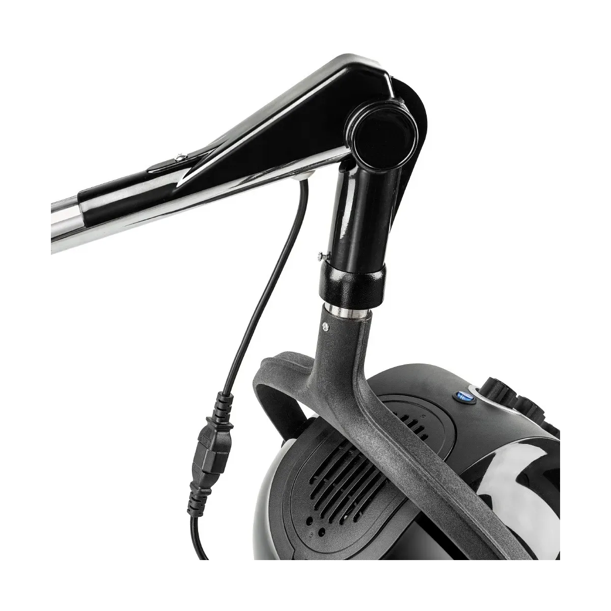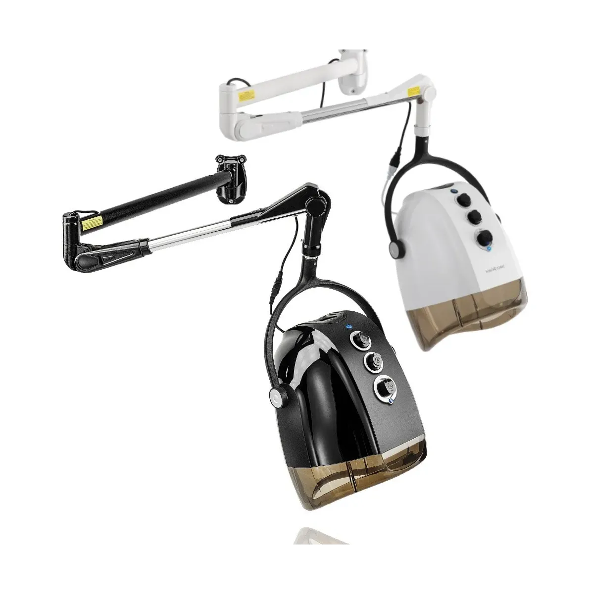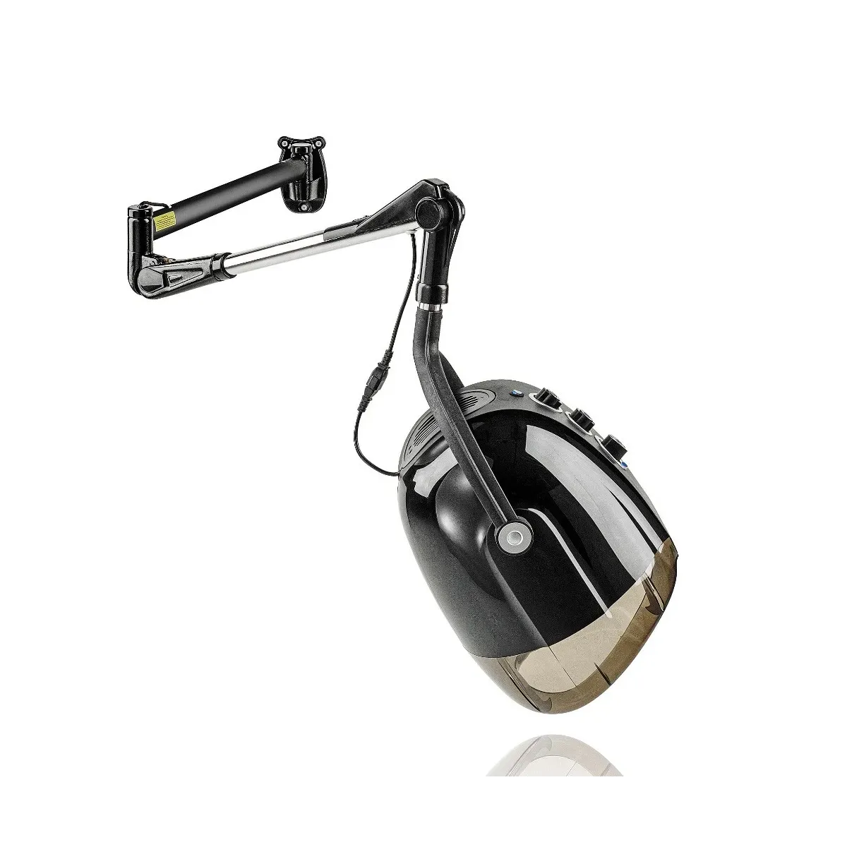 Grazie al braccio regolabile e al solido supporto a parete, il casco può essere facilmente orientato e regolato in altezza, garantendo comfort e praticità durante l'uso. Costruito con materiali resistenti e un design moderno (disponibile in versione nera o bianca), unisce estetica e funzionalità.