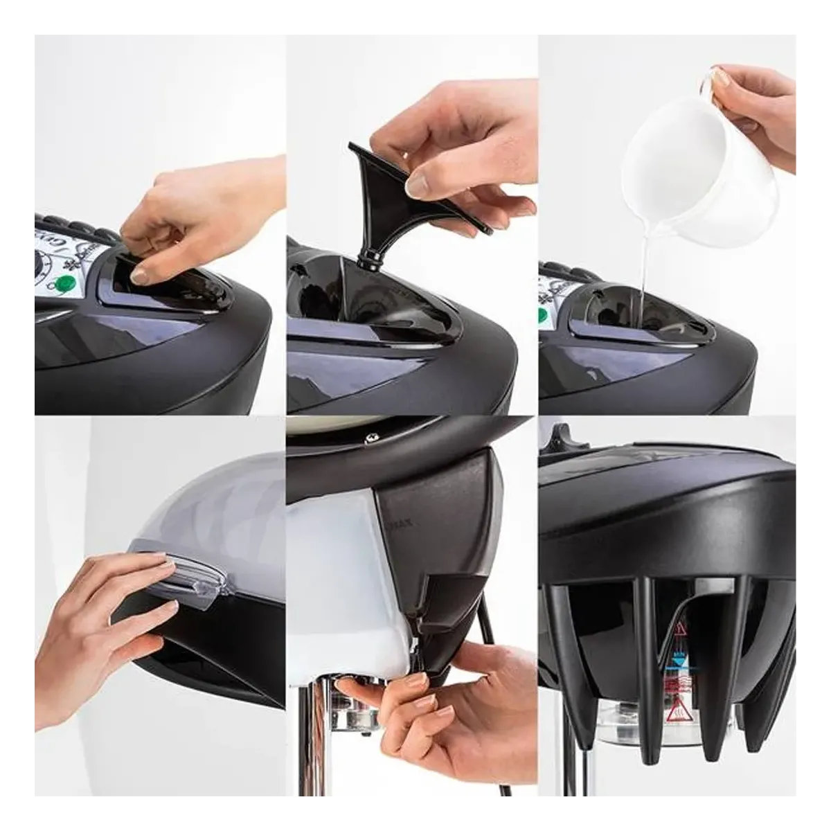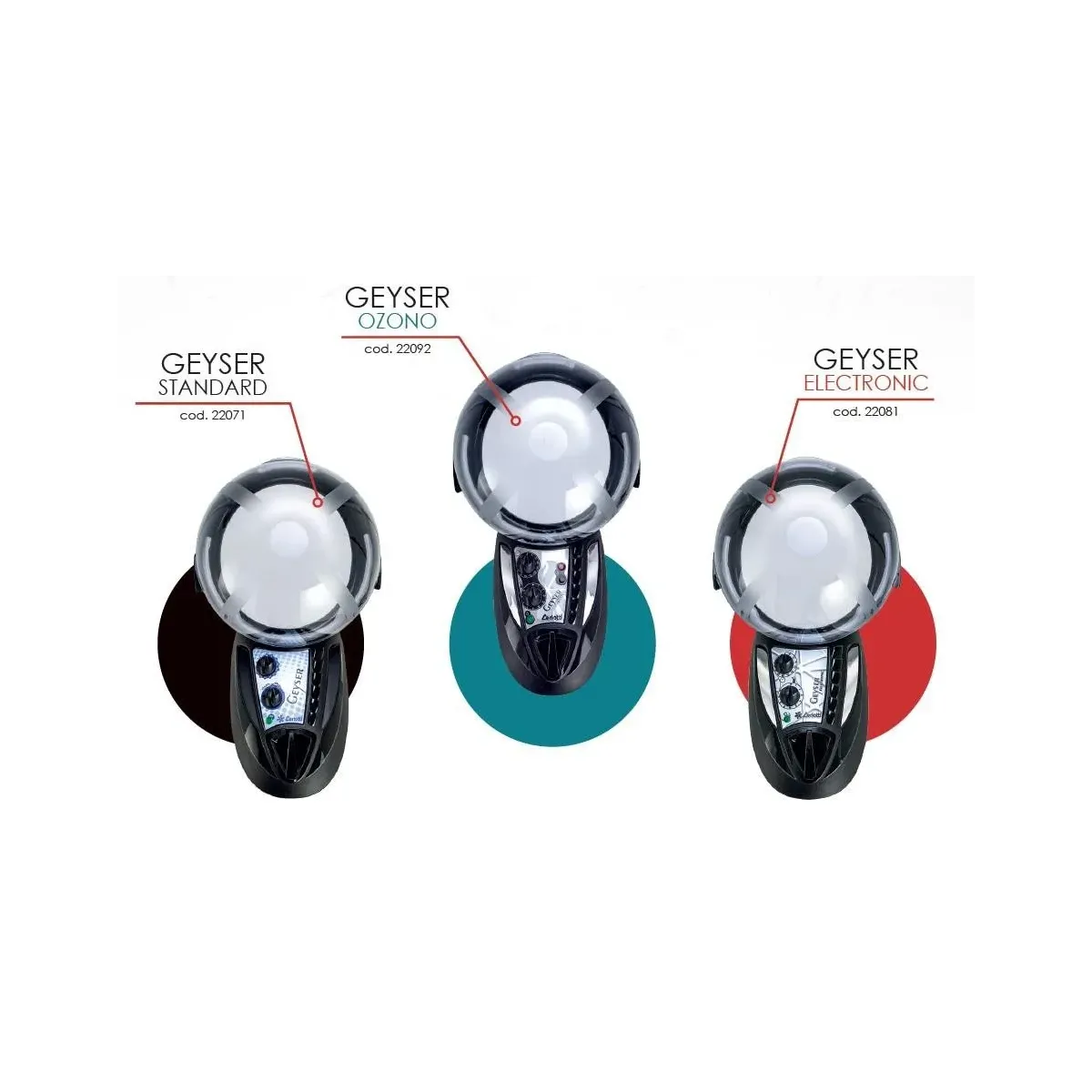 Disponibile anche in versione elettronica e ozono, il Geyser è equipaggiato con serbatoio per la condensa e una robusta struttura in nylon che assicura lunga durata e resistenza all'usura. Perfetto per saloni che cercano affidabilità, efficienza e stile in un solo apparecchio.