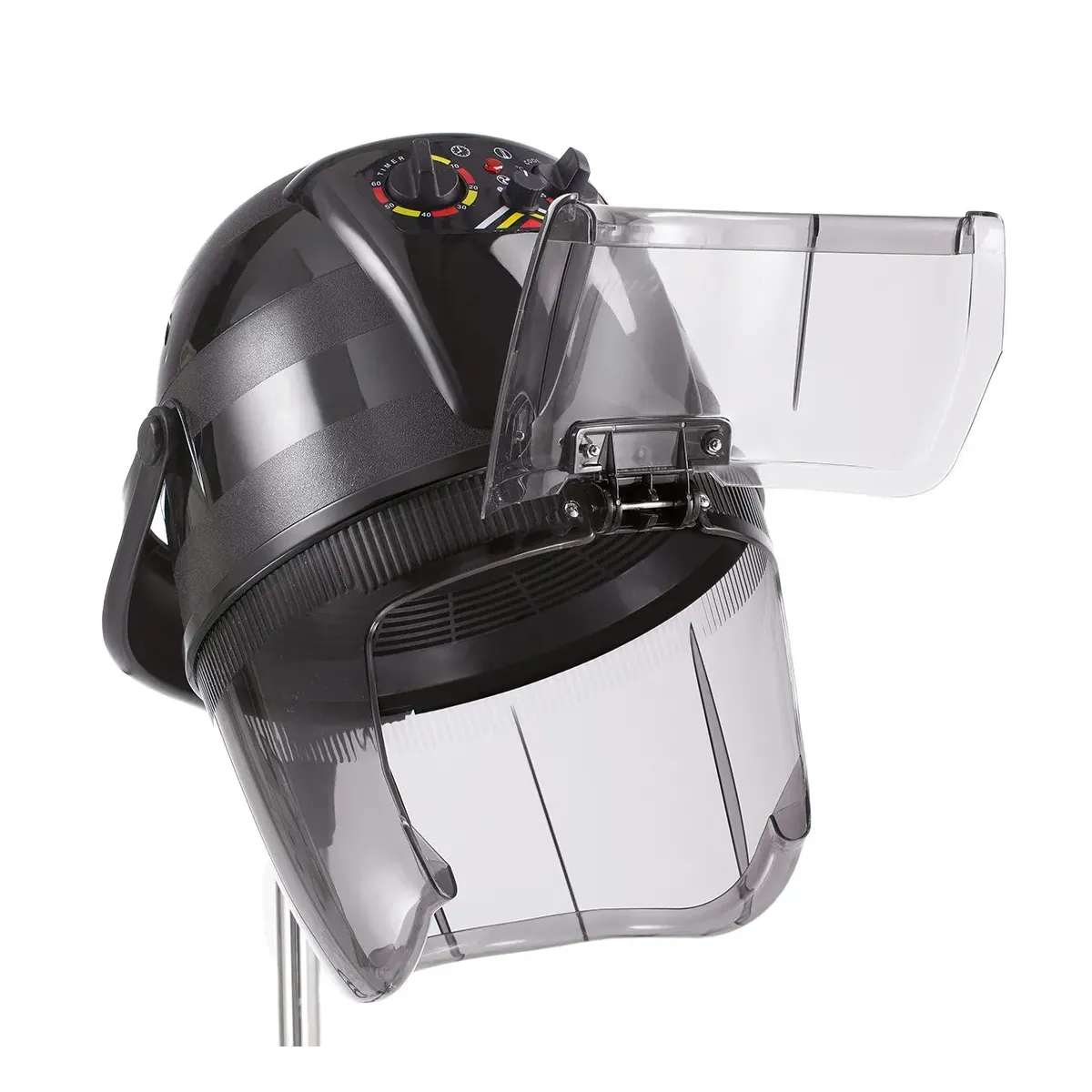 - Casco con supporto dotato di stativo regolabile in altezza fino a 1,80 metri e rotelle per un facile spostamento di posizione.