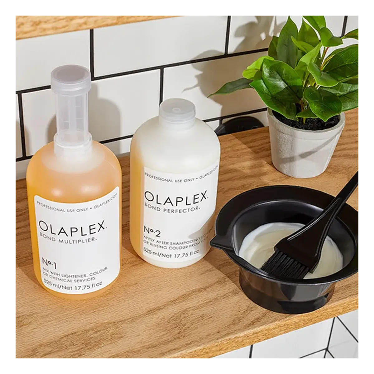 - Risciacqua e applica shampoo e conditioner OLAPLEX.