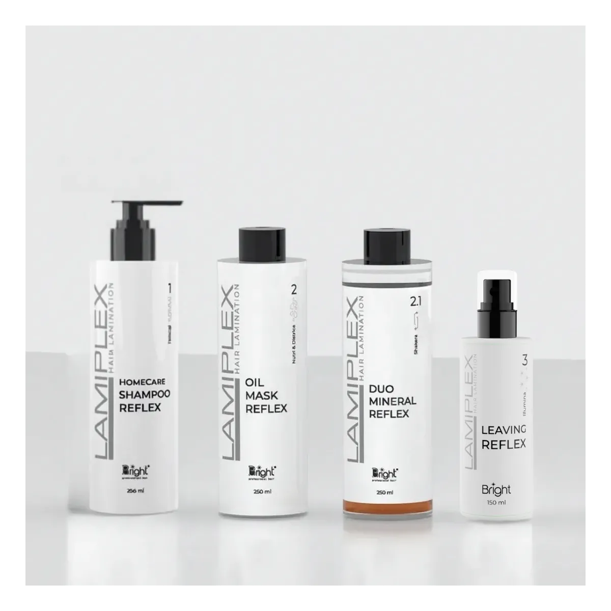 Per mantenere i risultati ottenuti in salone, Lamiplex Bright offre una linea di prodotti per l'home care, tra cui lo Shampoo Home Care Reflex e lo Spray Home Care Reflex. Questi prodotti consentono di preservare la lucentezza e la morbidezza dei capelli tra un trattamento professionale e l'altro.
