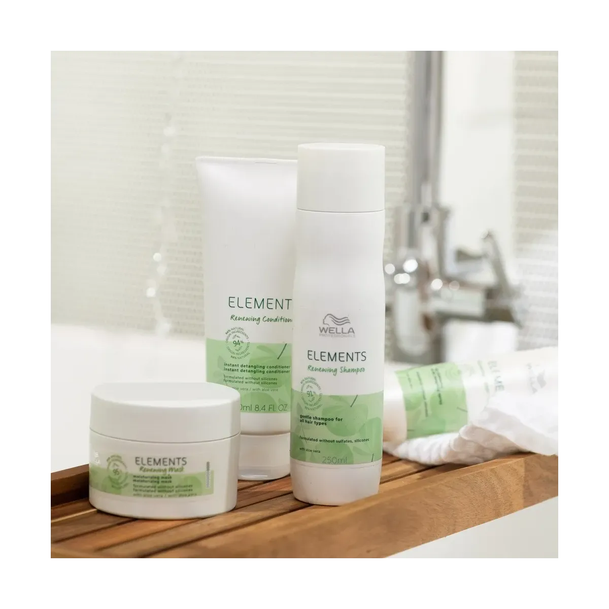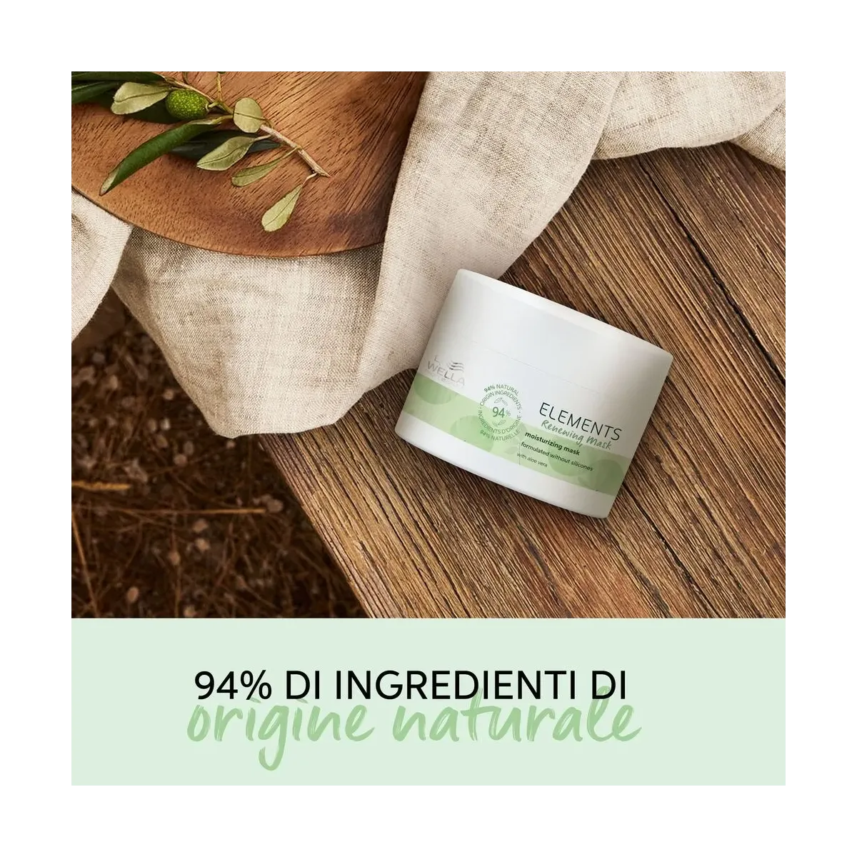 Wella Elements Renewing Maschera Idratante 150 ml protegge dall’effetto crespo e dalla rottura. La linea più delicata per una sensazione di capelli e cute sani, arricchita con ingredienti di origine naturale fino al 99%. New Elements Renew è la linea pensata per tutti i tipi di capelli e cuti normali, rinnova la morbidezza e la lucentezza della chioma. Nuova linea riformulata con ingredienti di origine naturale selezionati accuratamente come Aloe Vera, con proprietà delicate e calmanti, Vitamina E dalle doti antiossidanti, Estratto di oliva, per donare morbidezza e lucentezza e ingredienti idratanti a base di Cotone.