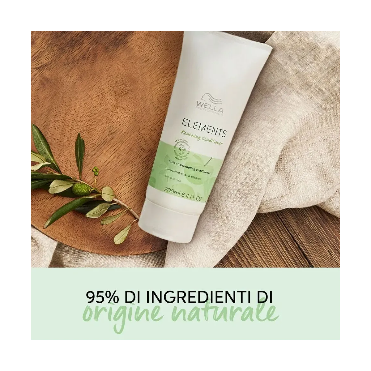 Wella Elements Renewing Conditioner da 200 ml è un districante istantaneo che dona maneggevolezza e luminosità. La linea più delicata per una sensazione di capelli e cute sani, arricchita con ingredienti di origine naturale fino al 99%. New Elements Renew è la linea pensata per tutti i tipi di capelli e cuti normali, rinnova la morbidezza e la lucentezza della chioma. Nuova linea riformulata con ingredienti di origine naturale selezionati accuratamente come Aloe Vera, con proprietà delicate e calmanti, Vitamina E dalle doti antiossidanti, Estratto di oliva, per donare morbidezza e lucentezza e ingredienti idratanti a base di Cotone.