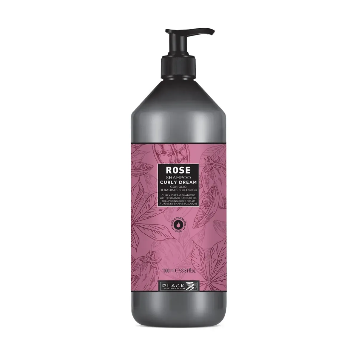 Shampoo Anti Crespo per Capelli Ricci 1000 ml Rose Black Professional