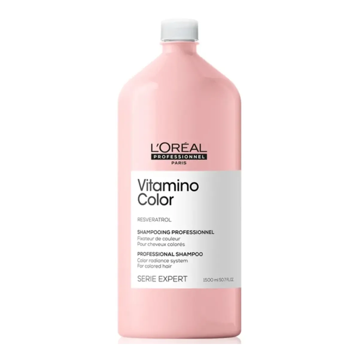 Shampoo L'Oreal Capelli Colorati Vitamino Color 1500 ml studiato per i capelli tinti. Con formula professionale arricchita da resveratrolo, potente antiossidante per proteggere il colore dallo sbiadimento fino a 8 settimane, e preservare la fibra per un colore luminoso come in salone. Elimina delicatamente le impurità, i capelli sono morbidi e protetti.