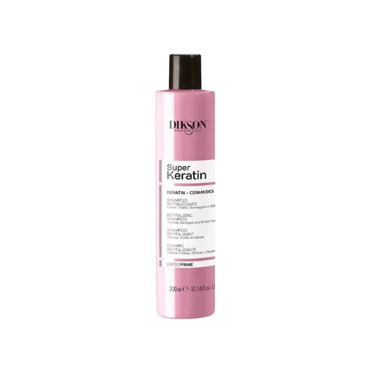 Shampoo Cheratina Super Keratin DiksoPrime 300 ml è un rivitalizzante per capelli trattati chimicamente, danneggiati e sfibrati con Cheratina, Ceramidi e Proteine di Riso. Deterge, delicatamente, rinforzando e migliorando visibilmente la struttura dei capelli. Idrata e nutre efficacemente, apportando morbidezza, vitalità e lucentezza. La formula è arricchita con: Cheratina, per un'azione rigenerante che ripristina la coesione cellulare Ceramidi conferendo al capello un aspetto più pieno, elastico e sano; Proteine di riso, con proprietà nutriente e idratante per capelli morbidi e corposi.