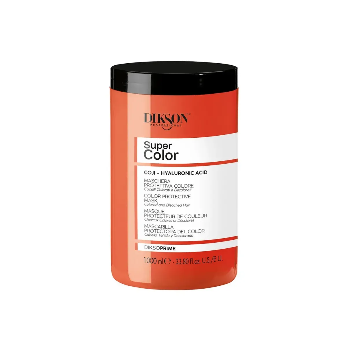 Maschera Capelli Colorati Super Color DiksoPrime 1000 ml è una maschera protettiva colore per capelli colorati e decolorati con Estratto di Bacche di Goji, Acido Ialuronico e Proteine di Riso. Districa, nutre e sigilla la cuticola, rendendo i capelli setosi, idratati e luminosi, senza appesantire. Protegge ed esalta il colore cosmetico, per riflessi intensi e duraturi nel tempo. Contiene: