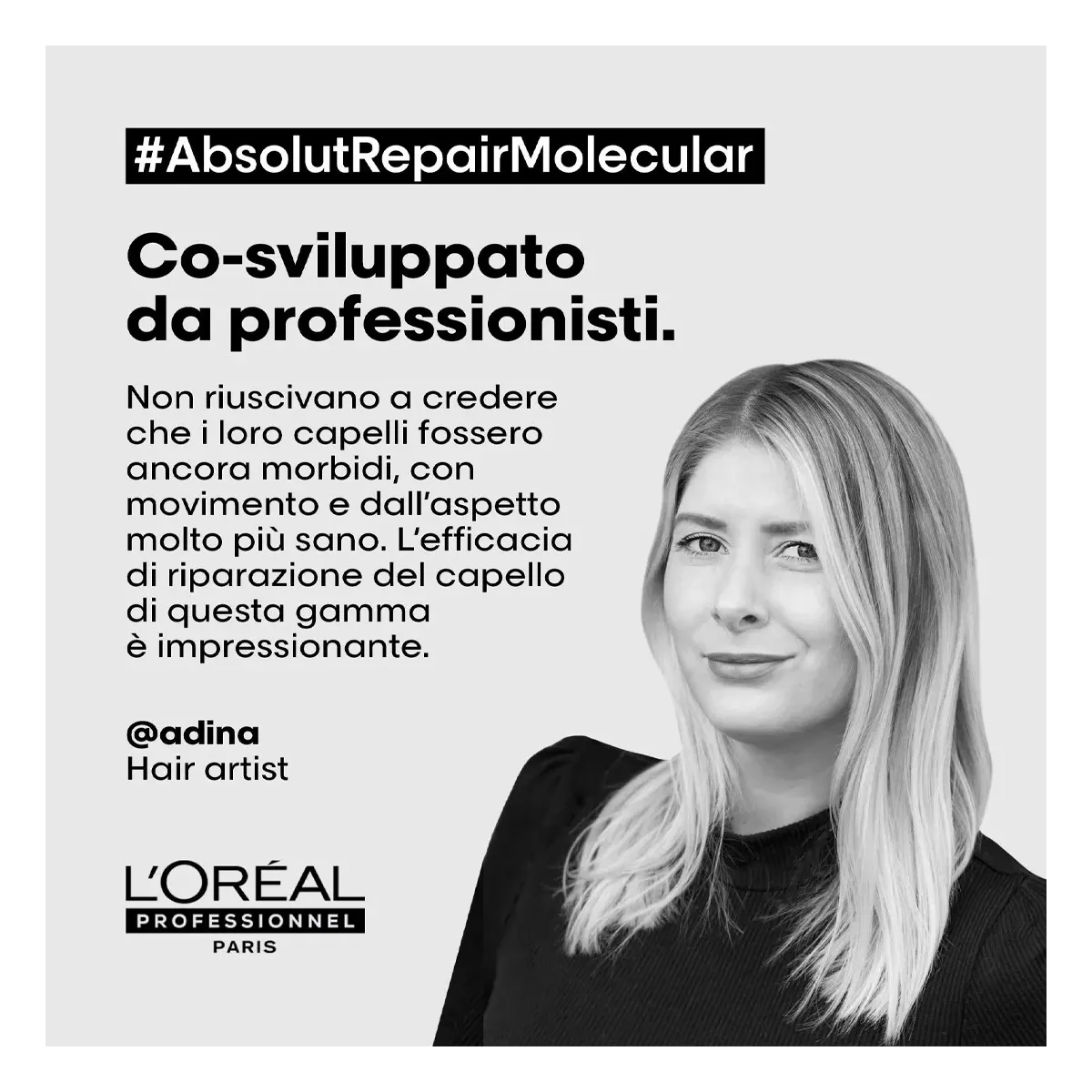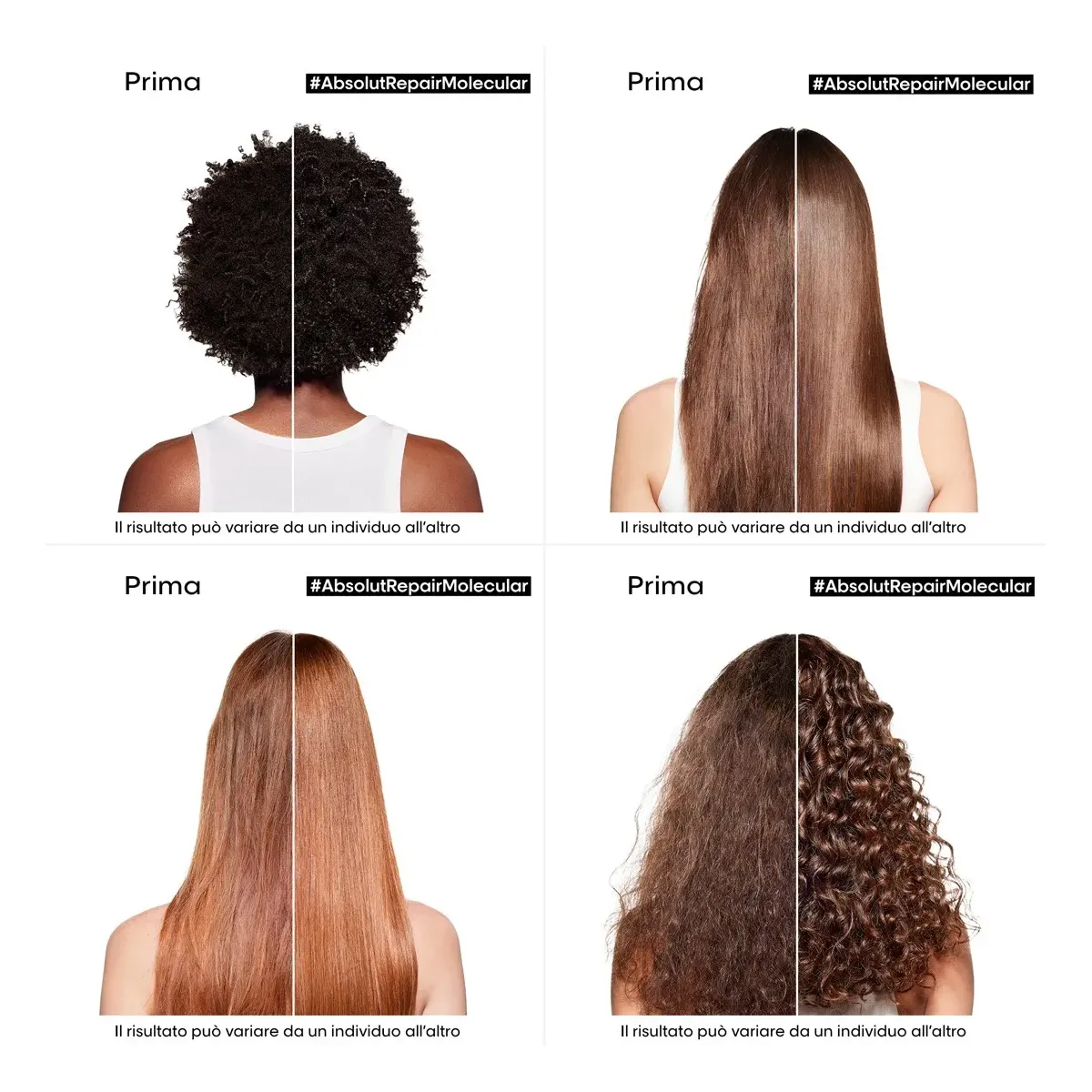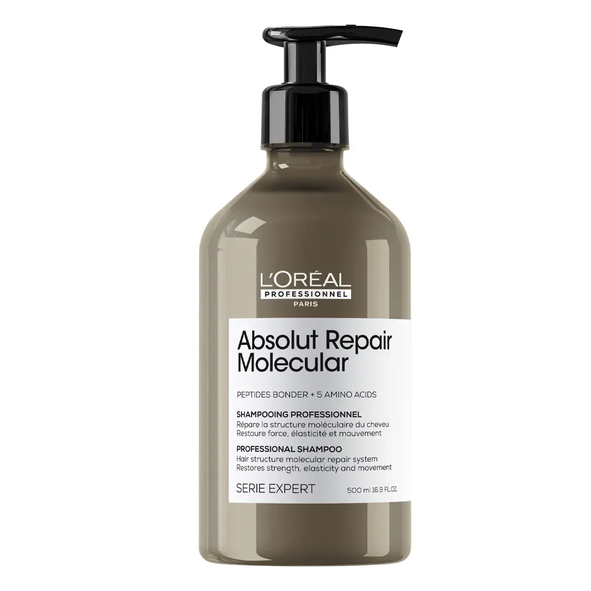 L'Oreal Absolut Repair Molecular Shampoo Questo shampoo brevettato, formulato con Peptidi leganti + 5 Aminoacidi, ripara la struttura macromolecolare dei capelli*. I capelli sono più forti e nutriti, con una maggiore elasticità, movimento, e con +86% di morbidezza