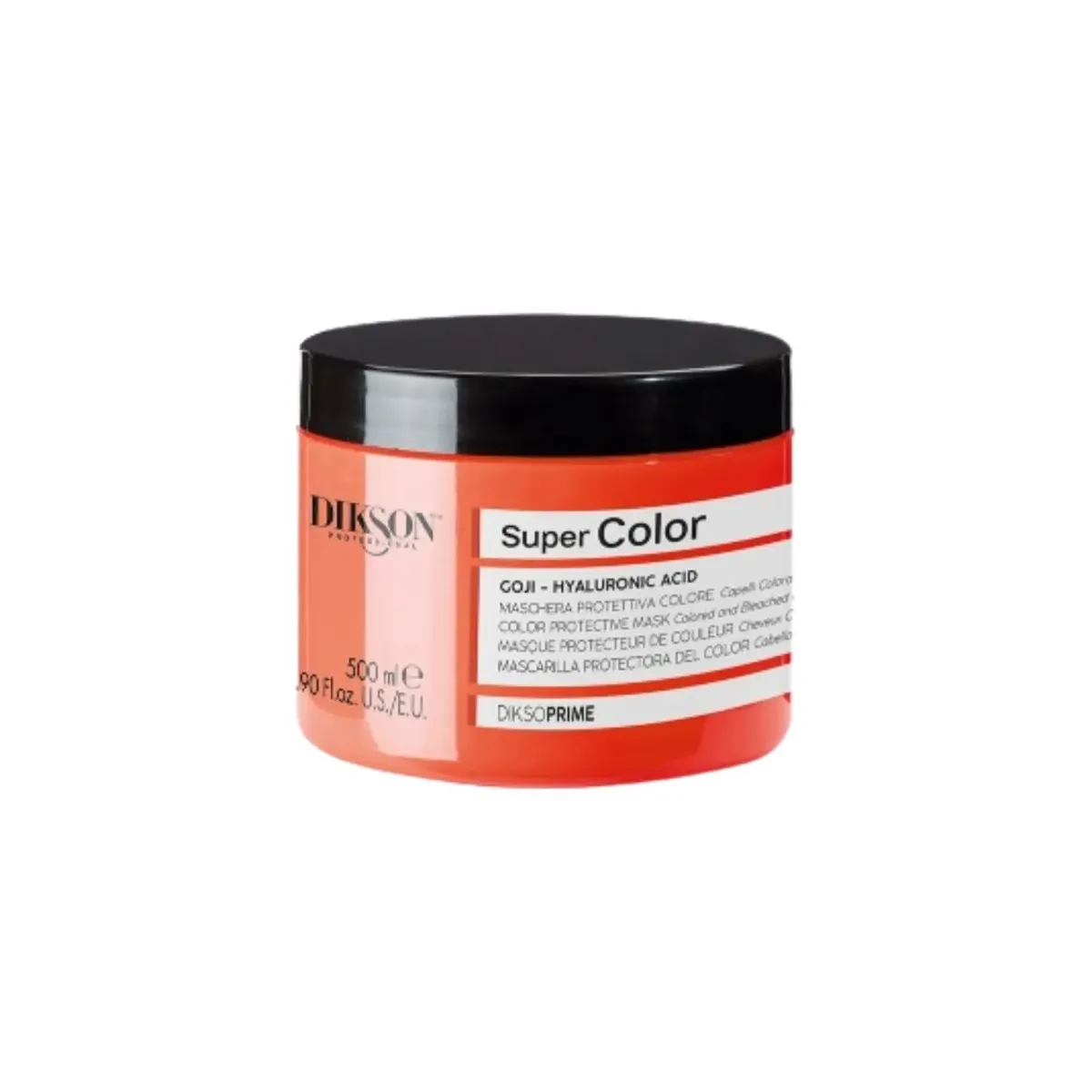 Dikson Maschera Colore Super protettiva colore per capelli colorati e decolorati con Estratto di Bacche di Goji, Acido Ialuronico e Proteine di Riso. Districa, nutre e sigilla la cuticola, rendendo i capelli setosi, idratati e luminosi, senza appesantire. Protegge ed esalta il colore cosmetico, per riflessi intensi e duraturi nel tempo.