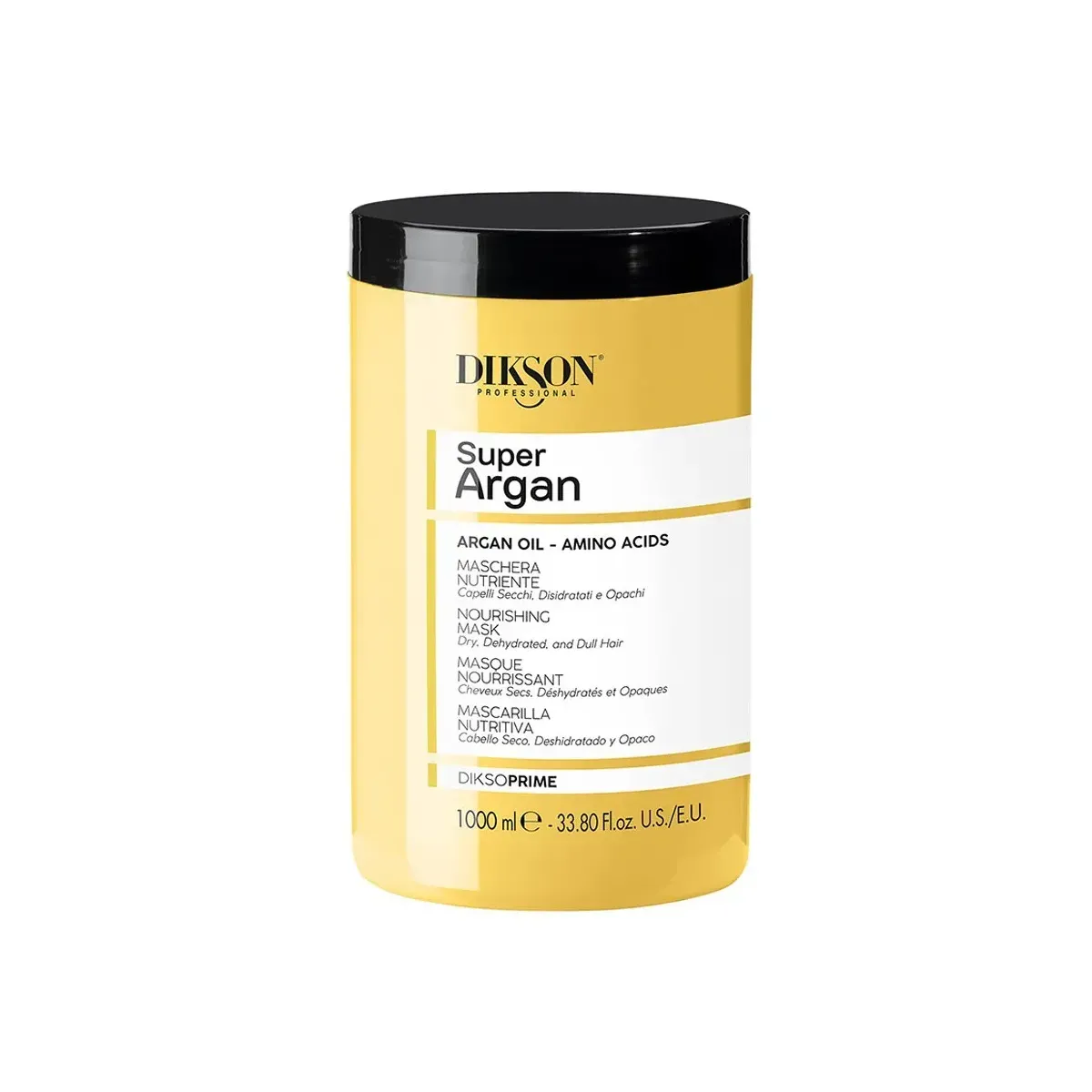 Maschera Capelli Secchi Super Argan DiksoPrime 1000 ml è una maschera nutriente per capelli secchi, disidratati e opachi con Olio di Argan, Olio di Macadamia, Amminoacidi e Proteine di Riso. Districa efficacemente, nutre intensamente e idrata istantaneamente i capelli, rendendoli morbidi e luminosi. Elimina il crespo, con un’azione anti-umidità e antistatica. Si consiglia l'utilizzo abbinato allo Shampoo Super Argan DiksoPrime.
