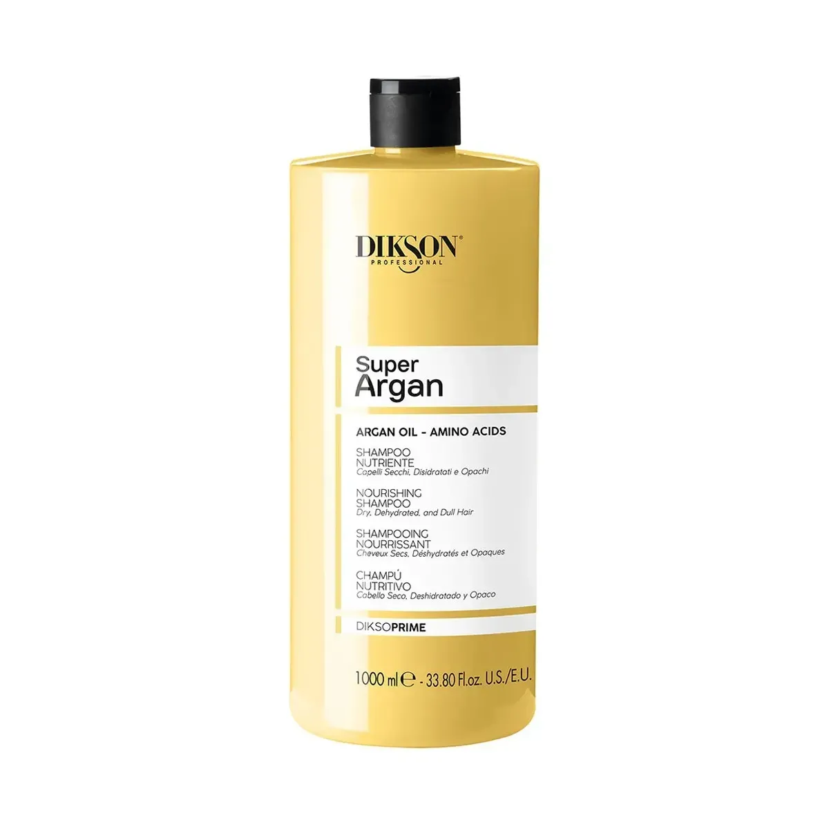 Shampoo per Capelli Secchi Super Argan DiksoPrime 1000 ml è uno Shampoo nutriente per capelli secchi, disidratati e opachi con Olio di Argan, Olio di Macadamia, Amminoacidi e Proteine di Riso. Deterge delicatamente, nutrendo e idratando intensamente i capelli. La sua formula, altamente condizionante, li rende visibilmente più soffici, brillanti e vitali. Contiene: