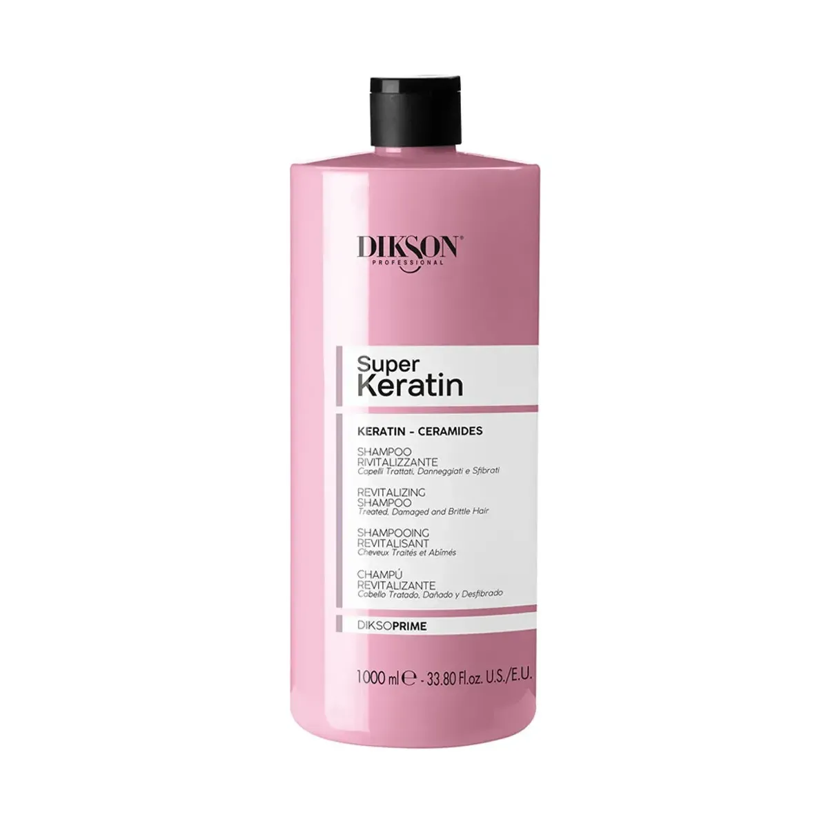 Shampoo per Capelli Rovinati Super Keratin DiksoPrime 1000 ml è uno shampoo rivitalizzante per capelli trattati chimicamente, danneggiati e sfibrati con Cheratina, Ceramidi e Proteine di Riso. Deterge, delicatamente, rinforzando e migliorando visibilmente la struttura dei capelli. Idrata e nutre efficacemente, apportando morbidezza, vitalità e lucentezza. La formula è arricchita con: Cheratina, per un'azione rigenerante che ripristina la coesione cellulare Ceramidi conferendo al capello un aspetto più pieno, elastico e sano; Proteine di riso, con proprietà nutriente e idratante per capelli morbidi e corposi.