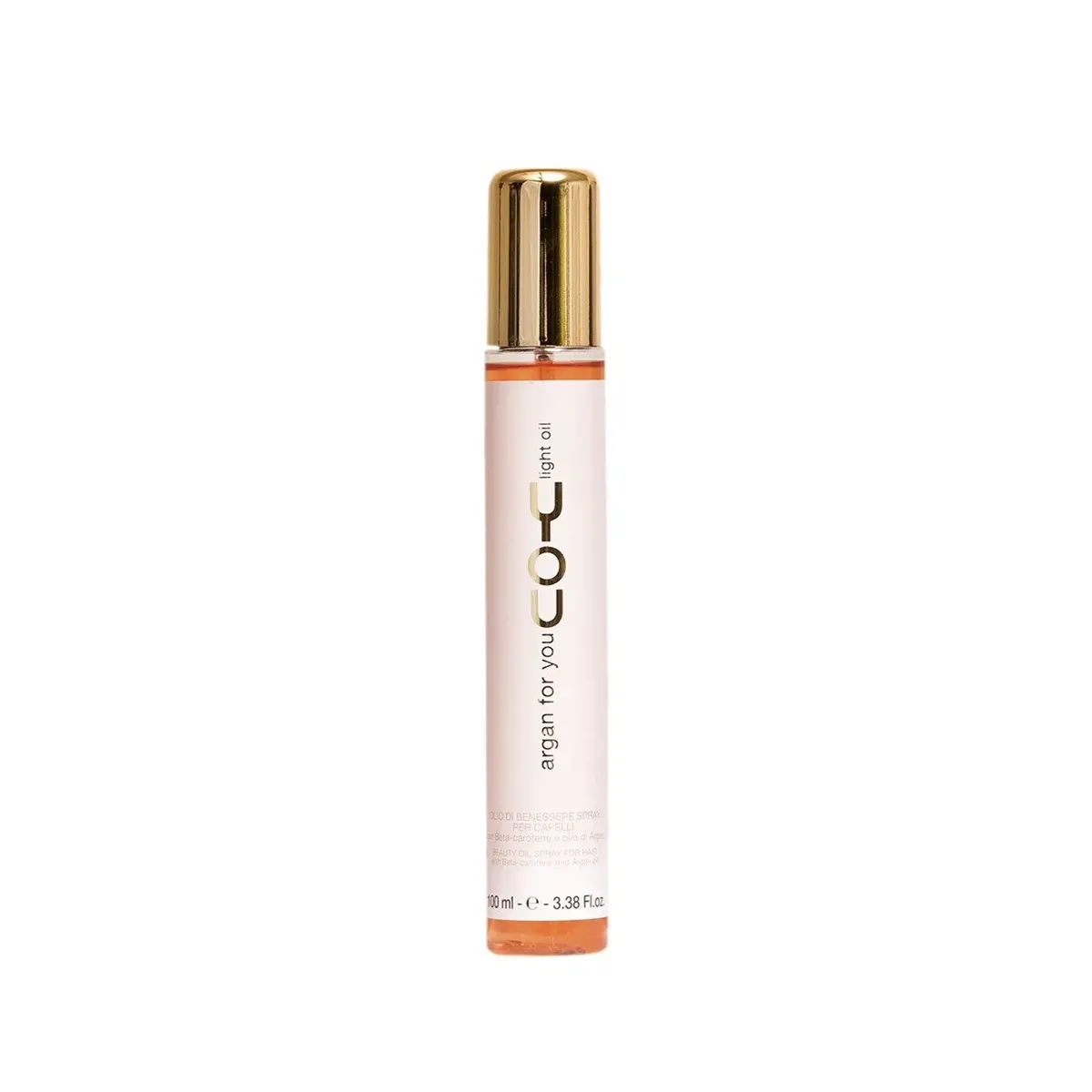 Olio spray per trattamento di benessere intenso per tutti i tipi di capelli a base di Olio di Argan e Beta Carotene.Di immediato assorbimento non unge,non lascia residui,assicura una profonda idratazione e setosità al tatto oltre ad una straordinaria brillantezza dei riflessi.L'olio di Argan ricco di vitamina E (antiossidante naturale) fortifica i capelli, li idrata e li difende dai radicali liberi e dall'inquinamento, il Beta Carotene oltre a rafforzare l'azione di difesa dai radicali liberi e dall'invecchiamento, rinnova le riserve energetiche della fibra capillare che risulta più forte esana.