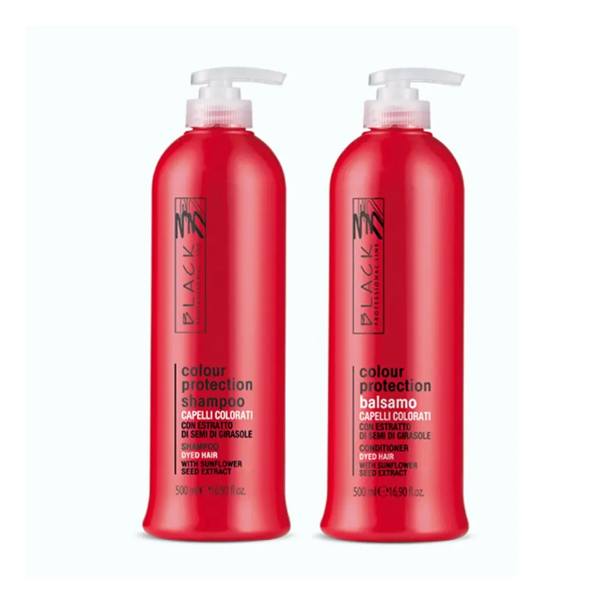Shampoo e Balsamo capelli colorati Black Professional per proteggere la tinta capelli e preservarla sempre brillante e lucente. Formati da 500 ml.