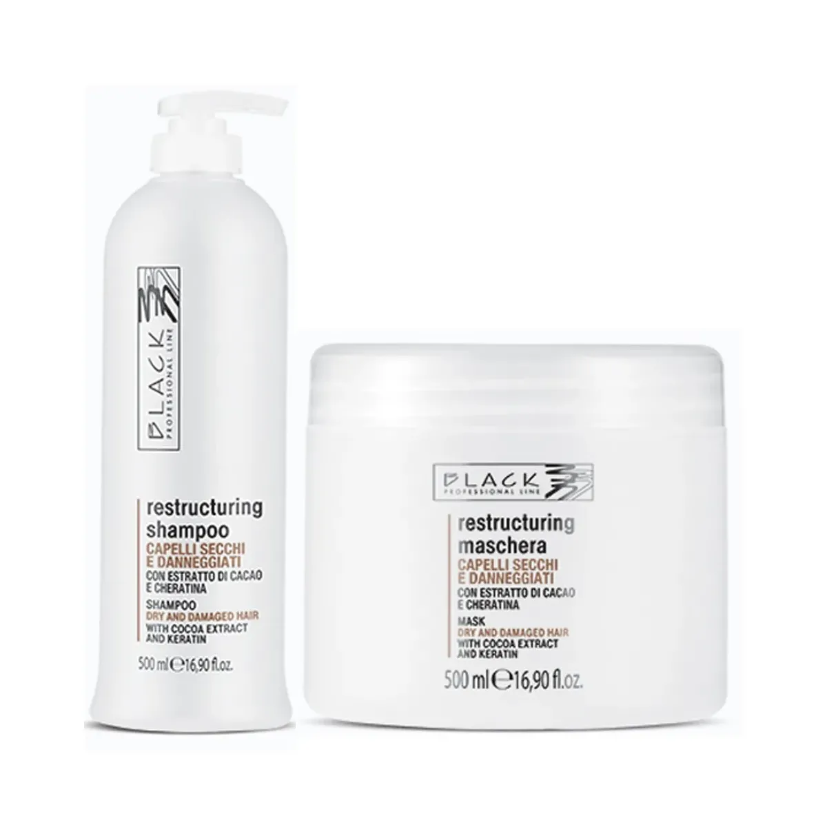 Ristrutturante Capelli Kit con Shampoo e Maschera Black Professional in comodi formati da 500 ml.