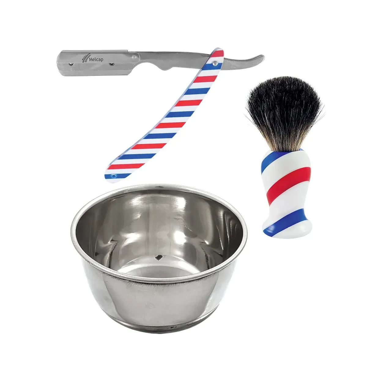 Kit da Barba Professionale Barber Shop con Rasoio Mezza Lama, Pennello e Ciotola in acciaio per poter eseguire una pulizia del viso esponendo un kit dal design innovativo nel proprio negozio barber shop.