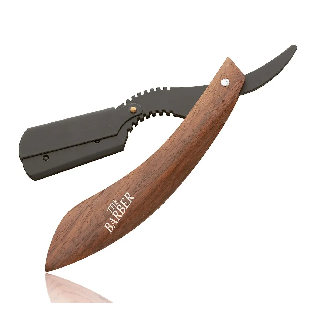 Rasoio a Mano Libera Vintage con Manico in Legno The Barber