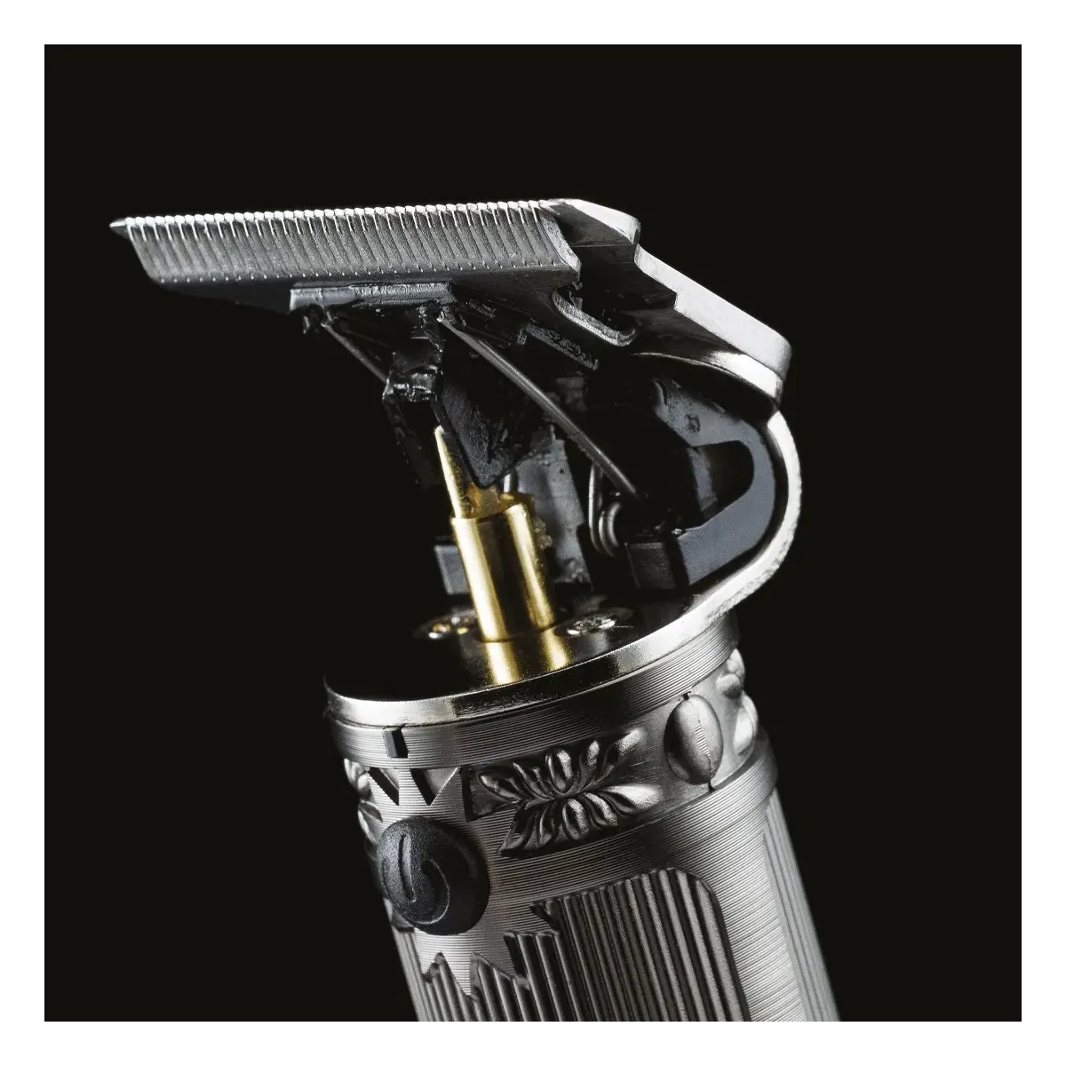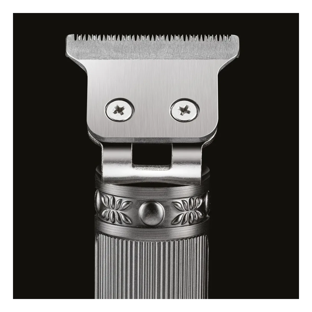 La caratteristica principale di questa tosatrice è la sua lama a T in acciaio inossidabile di alta qualità. Questa particolare conformazione della lama, rialzata rispetto al corpo della macchina, è specificamente progettata per offrire tagli ad alta definizione. Permette di realizzare rifiniture precise su contorni di barba e capelli, creare disegni stilizzati e definire bordature con estrema accuratezza. La precisione della lama in acciaio assicura un taglio netto e uniforme, riducendo al minimo le passate e garantendo un risultato professionale.