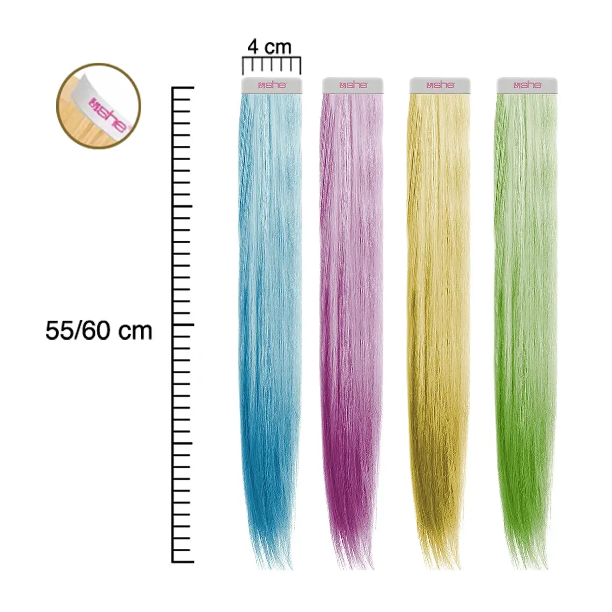 Extension Adesive Capelli Veri 4 Fasce Larghe 4 cm 55/60 cm Fantasia She