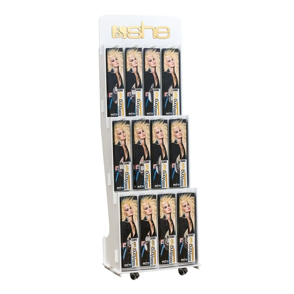 Espositore per Extension Clip, comodo da esporre in nel tuo salone parrucchiere, è dotato anche di comode rotelle per un facile trasporto.
