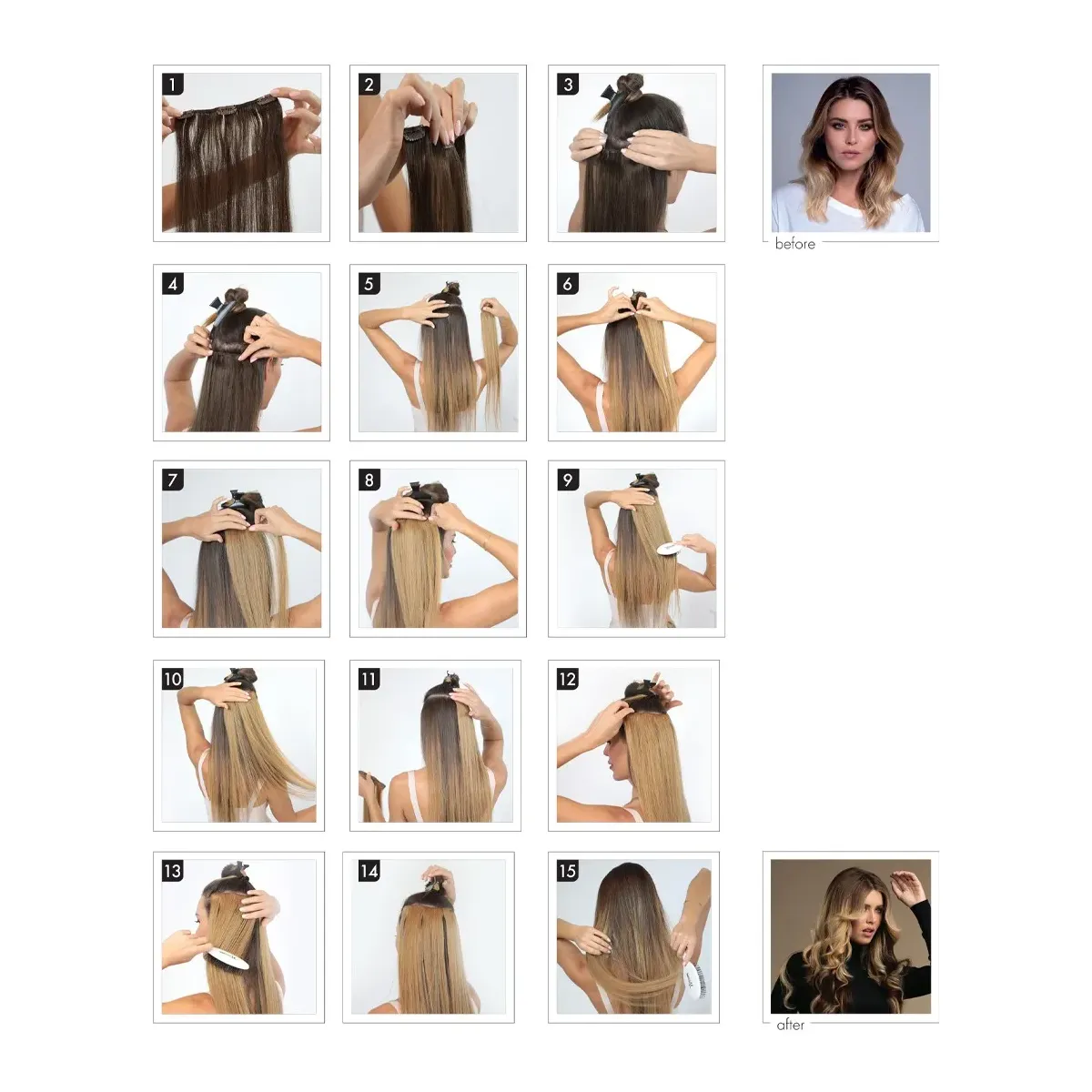 Per mettere efficacemente le extension clip occorre un po' di pratica ma è semplicissimo. Dopo aver imparato ad applicarle, sarai in grado di indossarle in pochi minuti. Se per te è la prima volta ti consigliamo di guardare il tutorial in basso per apprendere velocemente la tecnica di montaggio.