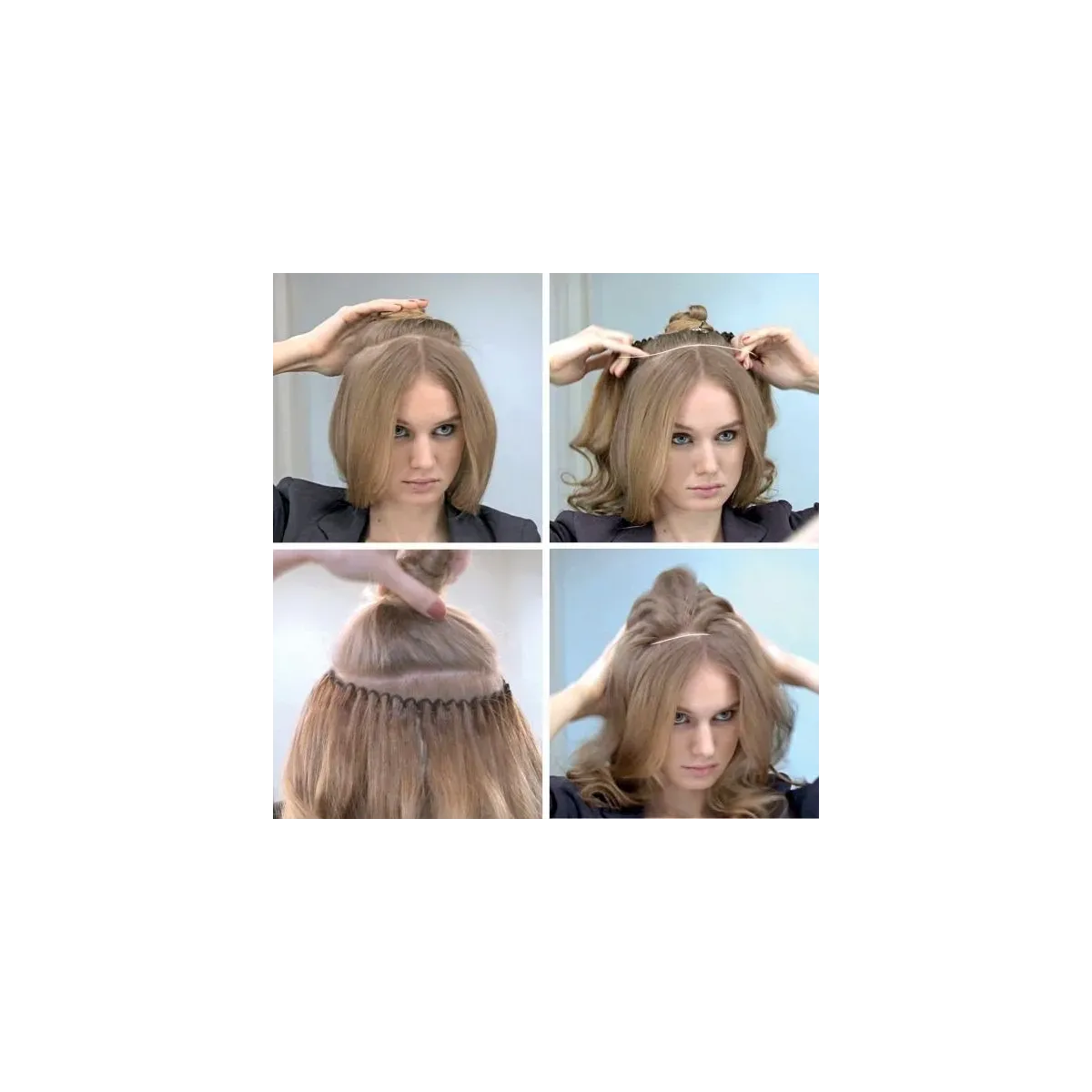 Il filo trasparente in nylon è stato brevettato per mantenersi perfettamente nella posizione desiderata senza il rischio di scivolare via e per attaccarsi vicinissimo alla cute fondendosi perfettamente con il colore dei tuoi capelli. Se è necessario puoi cucire ai capelli le 2 clip incluse in confezione per una maggiore sicurezza e una tenuta extra.