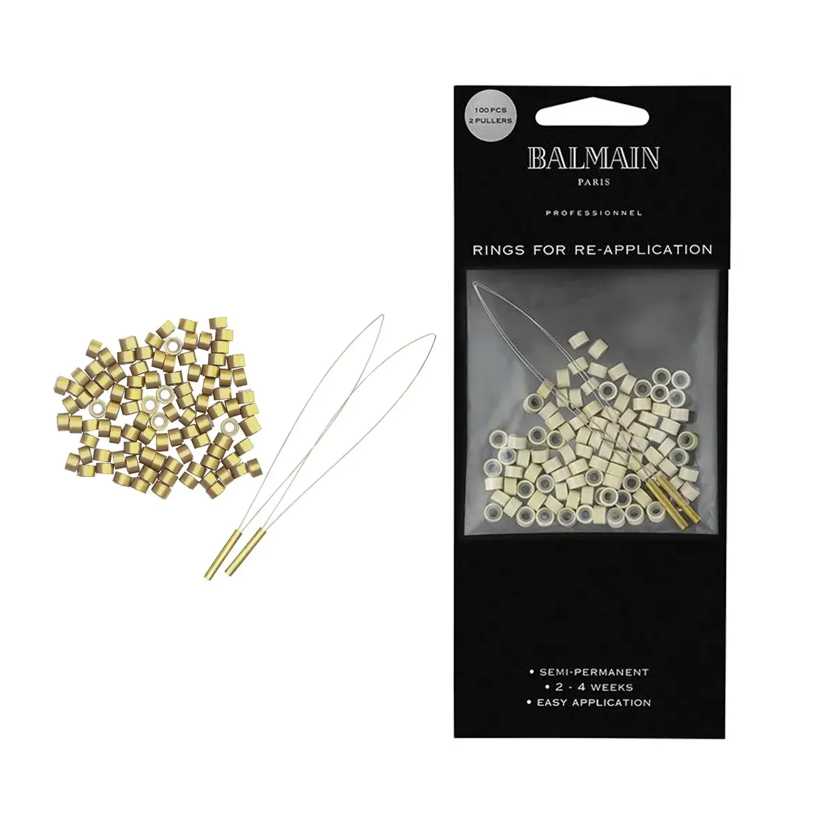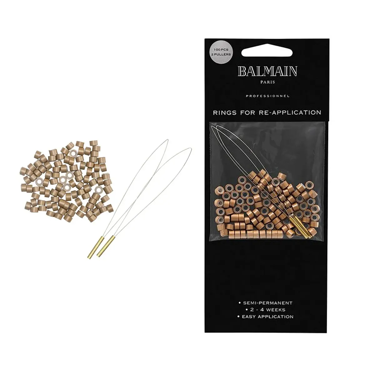 Balmain microring extension professionali progettati per comode applicazioni di tessiture capelli Extension Balmain. Ogni Ring è dotato di un inserto in silicone che protegge sia i capelli naturali che quelli del prolungamento. Gli anelli vengono fissati ai capelli utilizzando l'uncinetto incluso in confezione prendendo una ciocca sottile di capelli e una di extension. Ti consigliamo di scegliere un colore che si avvicini alla tua tinta capelli.