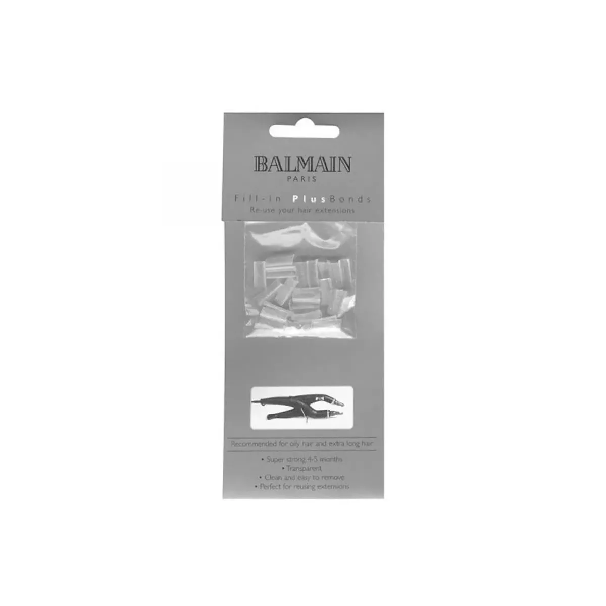 Balmain polimeri di cheratina trasparenti per la riapplicazione delle ciocche di extension, molto resistenti e durature fino a 12 settimane. Perfette per riutilizzare le extension capelli veri Balmain.