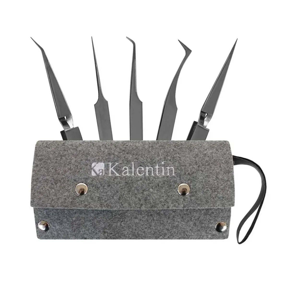 Pinze per Applicazione Extension Ciglia 5 Pz. con Fodero Kalentin