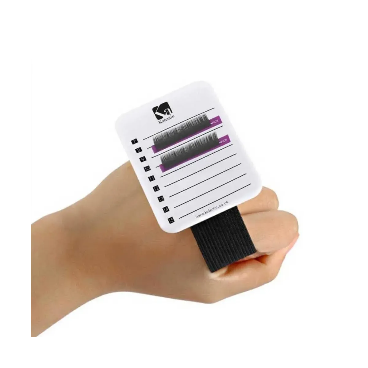 Polsino Extension Ciglia Kalentin è stato pensato per facilitare l'organizzazione delle extension ciglia durante il trattamento professionale. I ciuffi di extension possono essere comodamente ordinati, secondo lunghezza, sul lash pad graduato assicurato al polsino elastica. Quest'ultimo, tenuto intorno al palmo della mano o intorno al polso, fornisce supporto e permette un'applicazione più precisa delle extension, migliorando l'esito del trattamento.