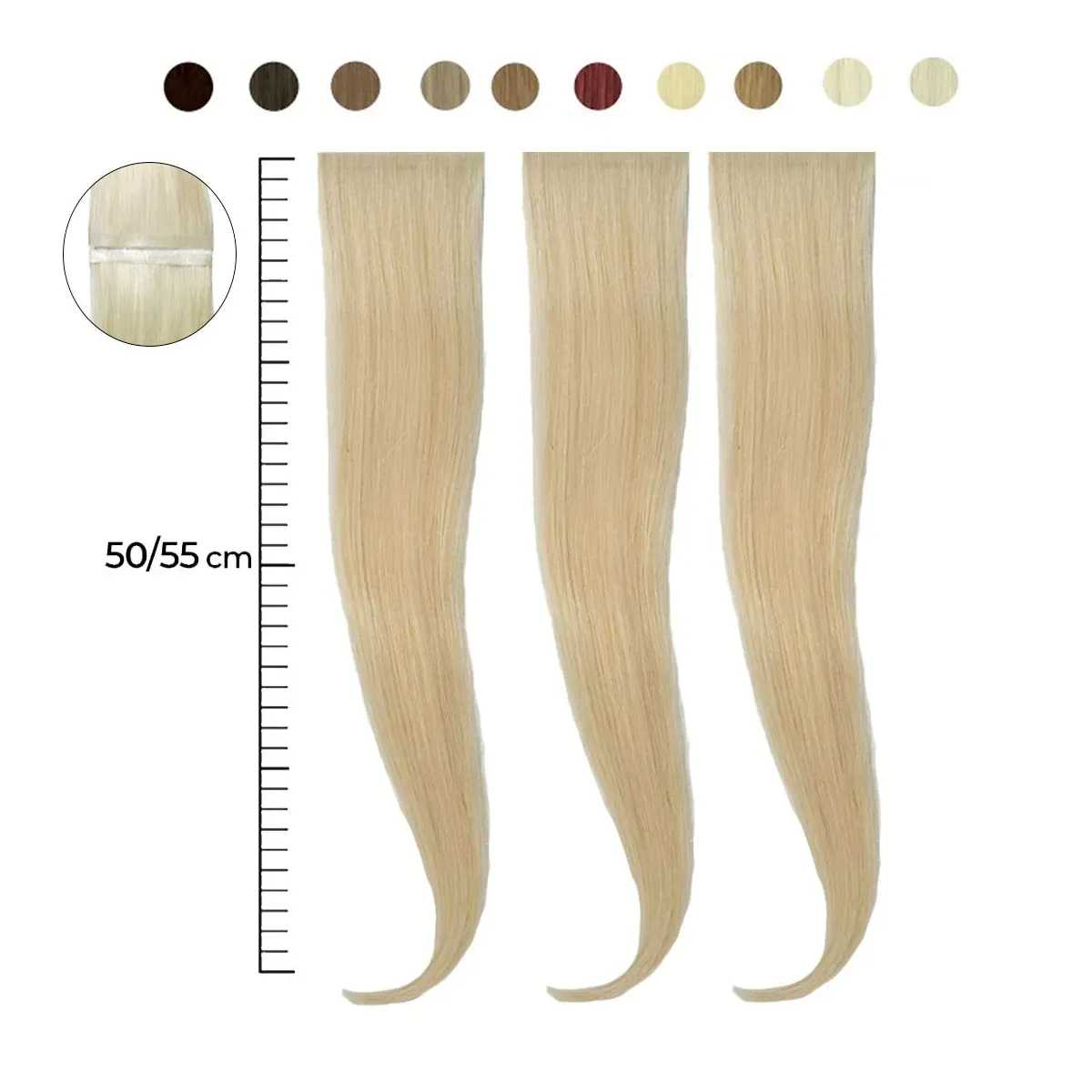Questa domanda è molto frequente per questo vi proponiamo un kit di 3 fasce extension pari a 45 grammi di capelli utile per un allungamento e un leggero infoltimento.