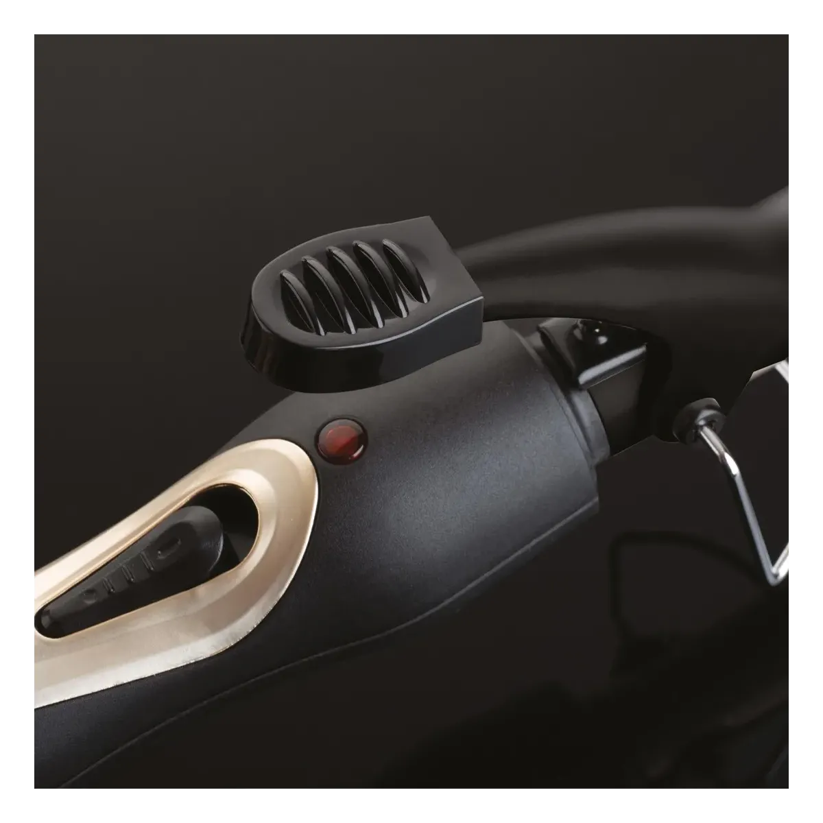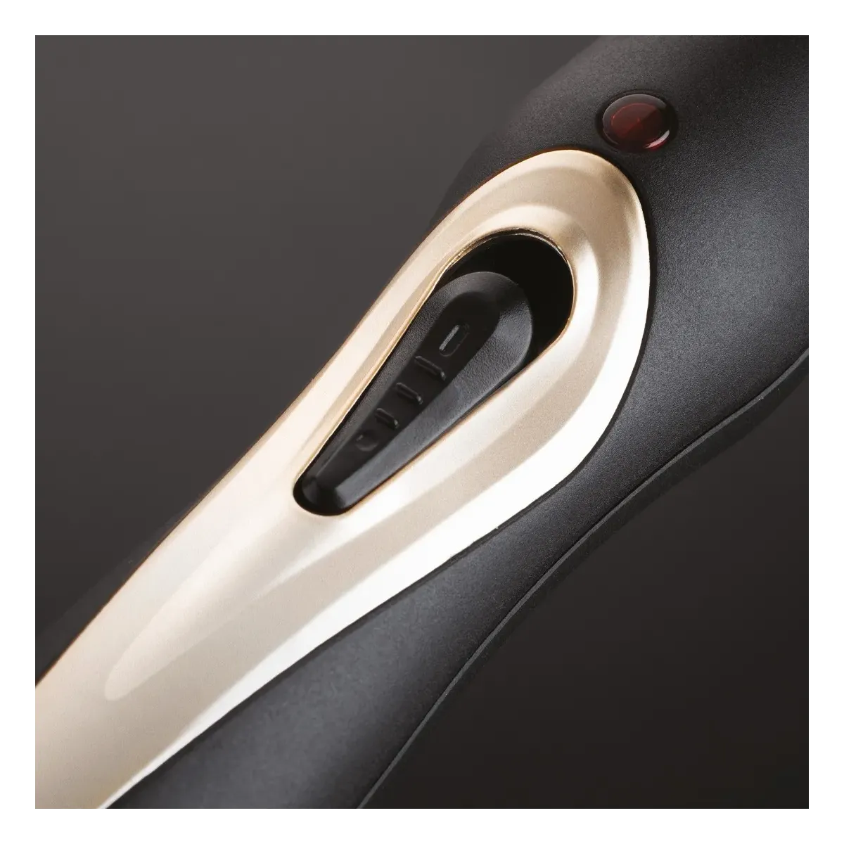 Il fusto è realizzato in ceramica tourmaline, un materiale che si distingue per la sua delicatezza durante lo styling. La ceramica garantisce una distribuzione uniforme del calore, riducendo il rischio di surriscaldamento in alcune zone e proteggendo così la fibra capillare da eventuali danni. La tormalina, un minerale naturale, è nota per la sua capacità di emettere ioni negativi quando riscaldata. Questi ioni aiutano a neutralizzare le cariche positive che causano l'effetto crespo, rendendo i capelli più lisci, setosi e luminosi dopo l'utilizzo. L'utilizzo di questo arricciacapelli è estremamente pratico e veloce. Grazie a un semplice tasto di accensione, l'apparecchio raggiunge rapidamente la temperatura ideale per lo styling in soli 30 secondi, permettendo di risparmiare tempo prezioso durante la preparazione. La punta isolata termicamente rappresenta un dettaglio importante per la sicurezza dell'utente, in quanto facilita la manipolazione del ferro durante la creazione della piega, prevenendo il rischio di scottature accidentali sulle dita o sul cuoio capelluto. Un'ulteriore caratteristica che incrementa la maneggevolezza e la praticità d'uso è il cavo rotante a 360°. Questo sistema permette di muovere l'arricciacapelli con libertà, senza che il cavo si aggrovigli o limiti i movimenti, rendendo l'esperienza di styling più confortevole ed efficiente.