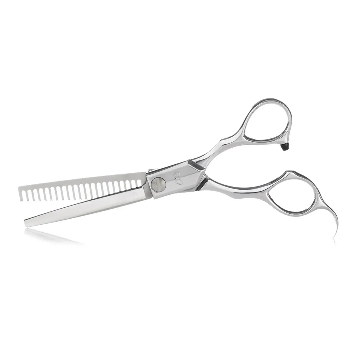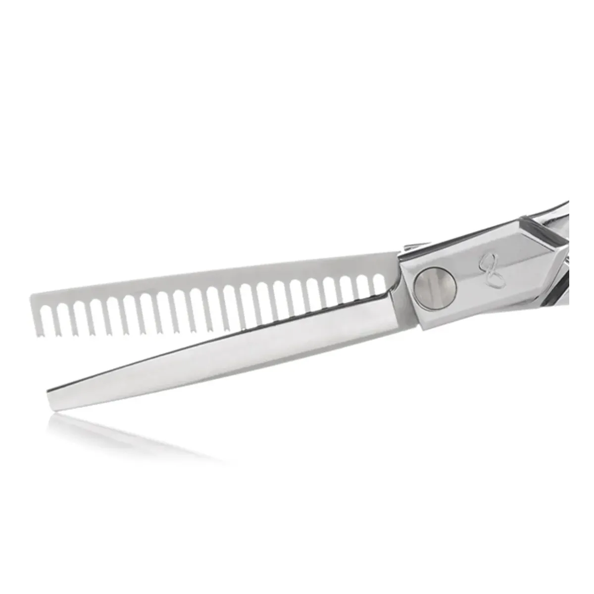 Nello specifico vi descriviamo queste forbici per sfoltire i capelli realizzate in acciaio inossidabile al cobalto e caratterizzate da una lama liscia ed una dentata che può essere scelta tra 20, 30 o 40 denti, tutte le varianti hanno una misura di 5,5 pollici.