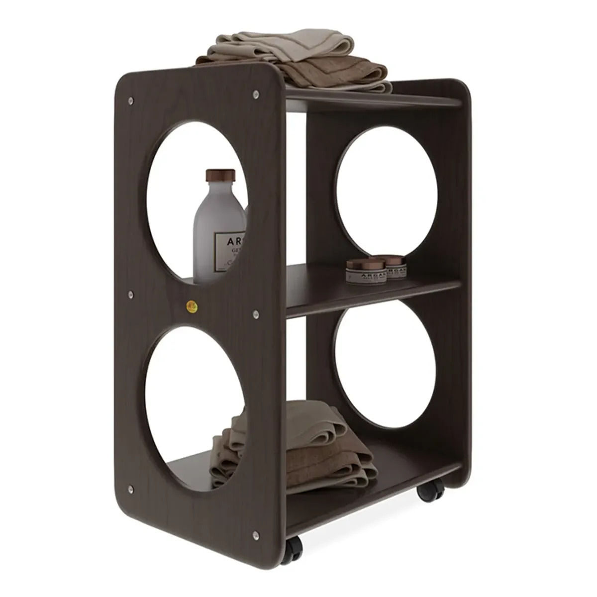 Il carrello estetica in legno funzionale, perfetto per organizzare e trasportare gli strumenti e i prodotti necessari per i trattamenti estetici.