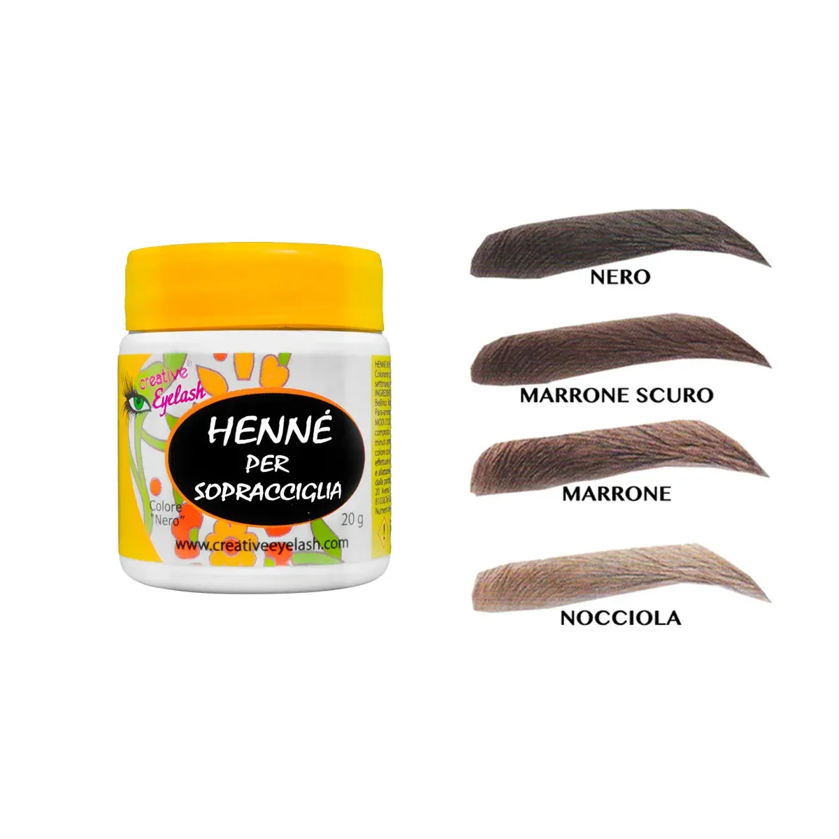Hennè Sopracciglie in polvere ideale per la colorazione delle sopracciglia, la correzione della forma e usato per la creazione di un tatuaggio semipermanente. Si rimuove in modo omogeneo dalla pelle con un bastoncino d'arancio e acqua tiepidi. E' disponibile nelle colorazioni basi: Nero, Nocciola, Castano e Castano chiaro ma ciò non toglie che si desidera una colorazione particolare può essere creata miscelando i vari colori disponibili.