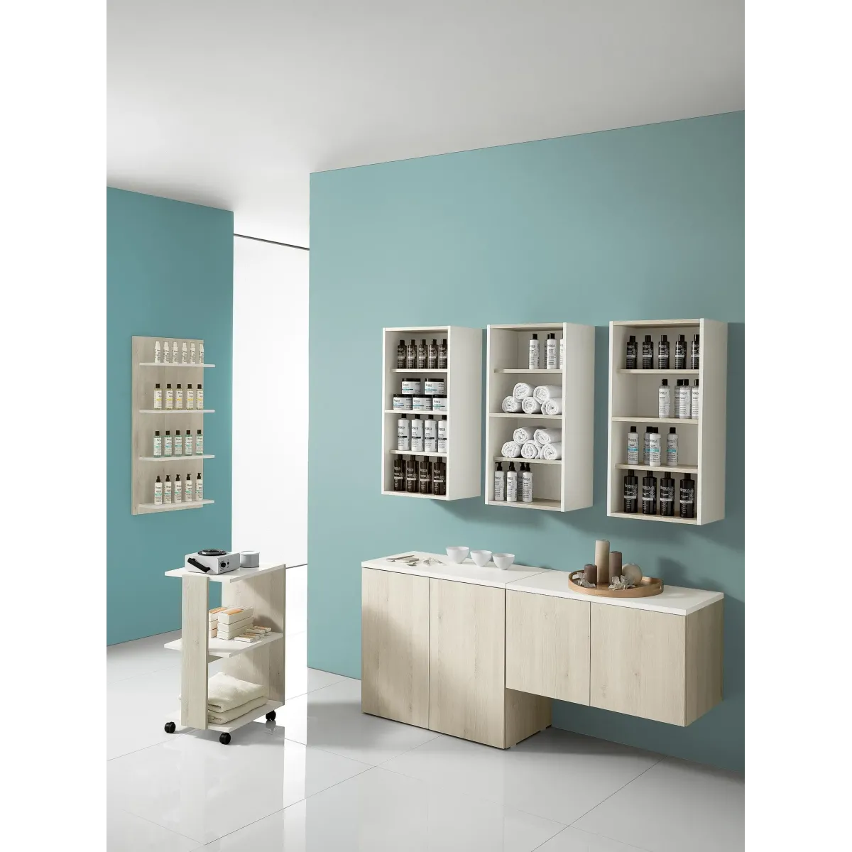 Espositore a Muro per Centro Estetico in Legno Larice Bianco