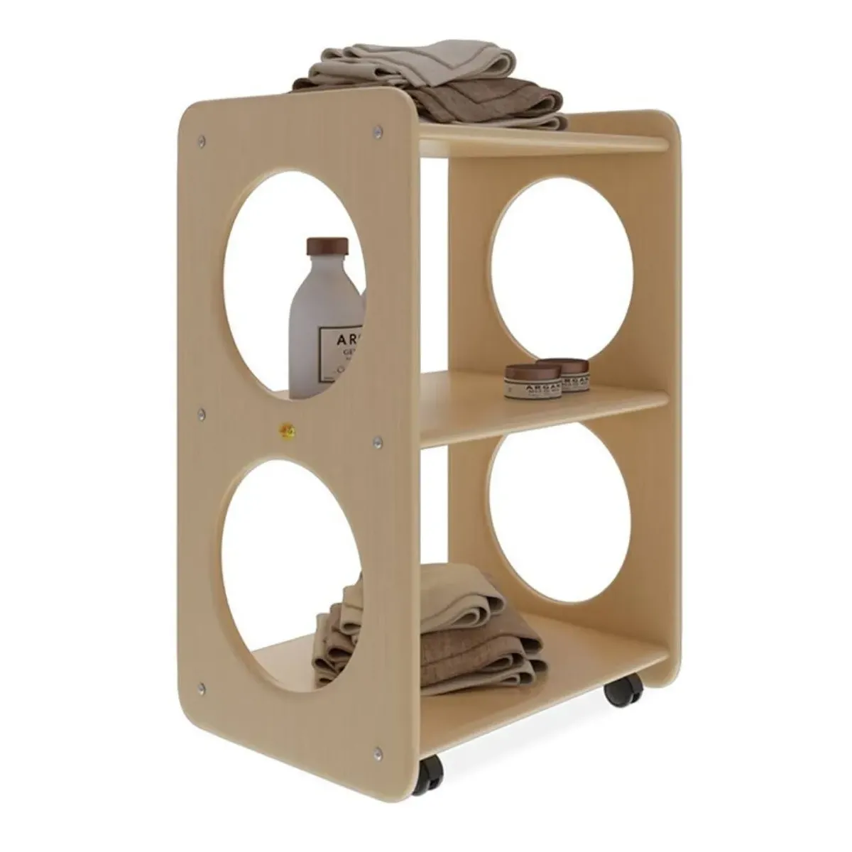 Il carrello estetica in legno funzionale, perfetto per organizzare e trasportare gli strumenti e i prodotti necessari per i trattamenti estetici.