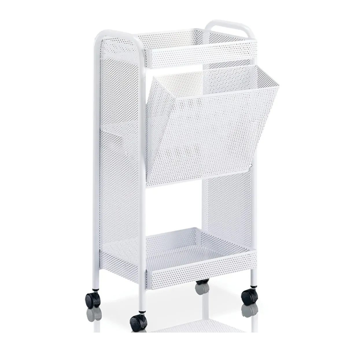 Carrello per Ceretta professionale perfetto per il tuo centro estetico e benessere. Ha una solida struttura in metallo bianco forata e possiede due comodi ripiani sui quali poggiare i prodotti estetici durante la depilazione.
