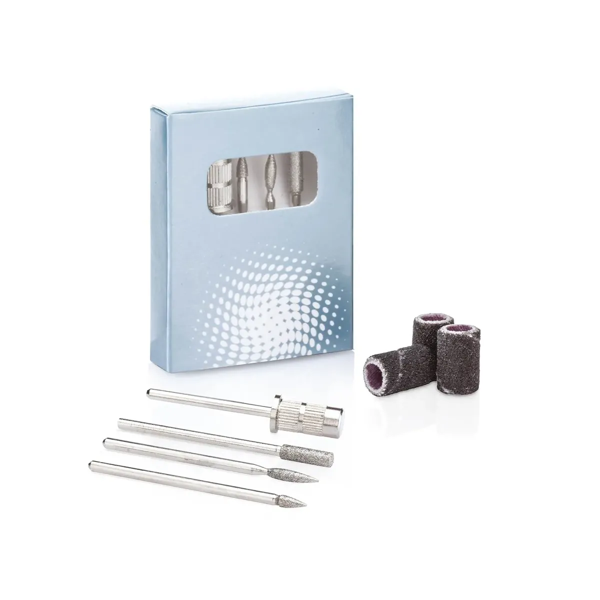 Questo set di punte fresa è l'accessorio ideale per professionisti e appassionati di nail art. Compatibile con la maggior parte delle frese elettriche, il kit include diversi tipi di punte in metallo e cilindri abrasivi per soddisfare ogni esigenza di manicure e pedicure.
