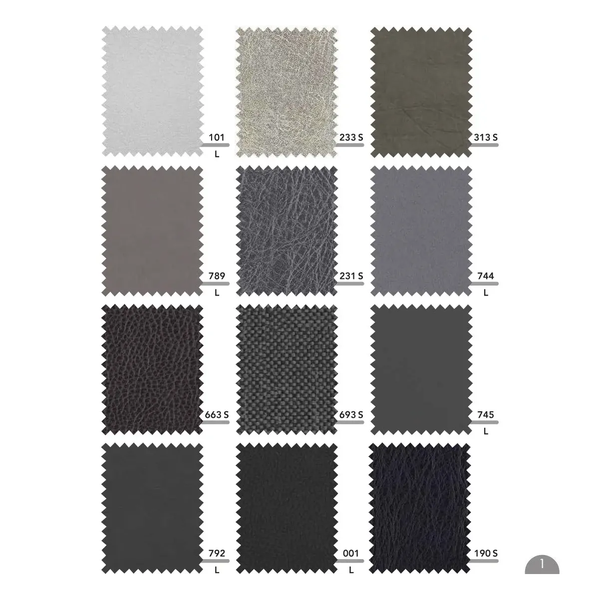 Seduta in poliuretano schiumato con inserto in legno. Piedi di appoggio in alluminio pressofuso. Rivestimenti skai a scelta.
