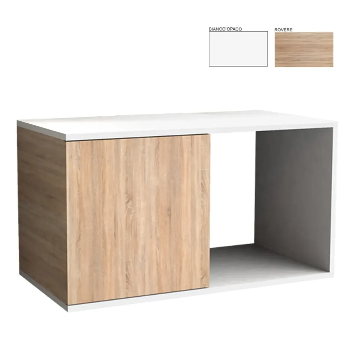Mobile Centro Estetico strutturato completamente in legno con possibilità di scelta tra i colori bianco opaco e rovere. Può essere acquistato sia completo di accessori come il lavello ed il miscelatore, che senza. Il mobile per centro estetico presenta anche 1 anta apribile con sistema di apertura premi/apri ed un vano a giorno molto grande per ospitare diverse attrezzature.