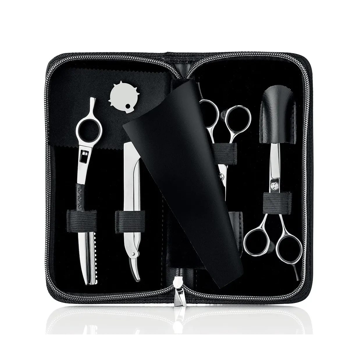La custodia comoda e pratica anche da trasportare è dotata anche di un rasoio con occhiello e un rasoio mezza lama per creare un taglio capelli perfetto al tuo cliente.