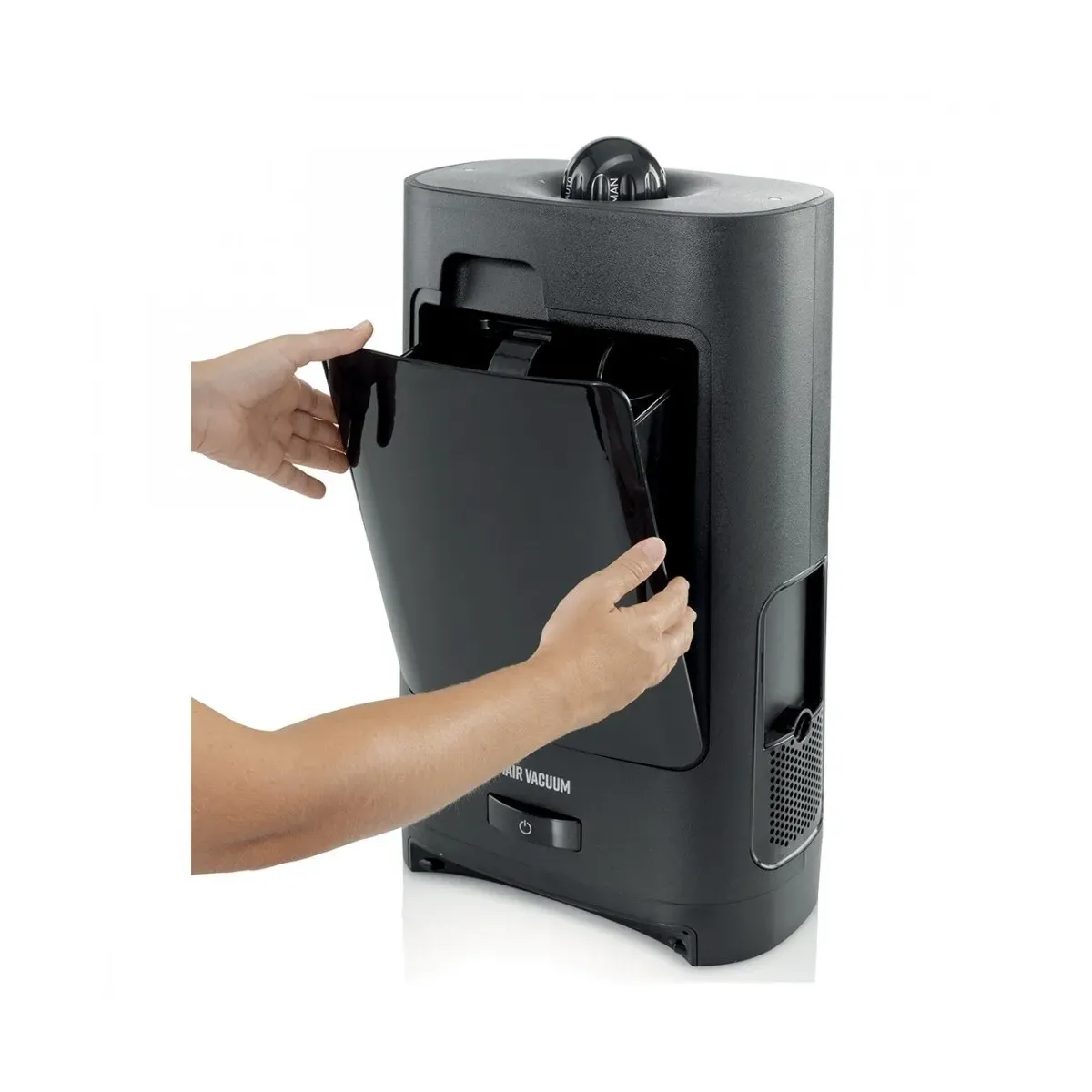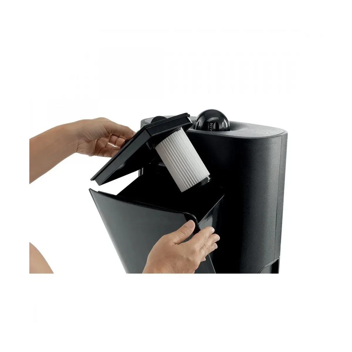 Funziona efficientemente grazie all’azione ciclonica di cui è dotato ed ha un doppio filtraggio che garantisce rilascio di aria pulita nella stanza.